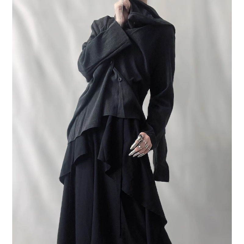 衫 孤鲤 云肩黑白飘逸大袖 原创汉服男女同款 刺绣仙气清冷感 青玄