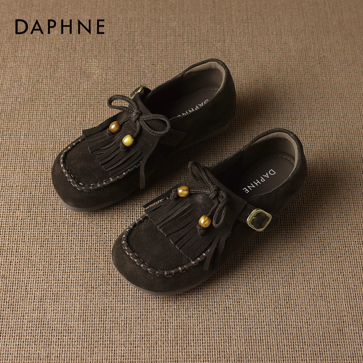 流苏豆豆鞋 达芙妮真皮全包勃肯鞋 子不累脚平底单鞋 女鞋 女2025新款