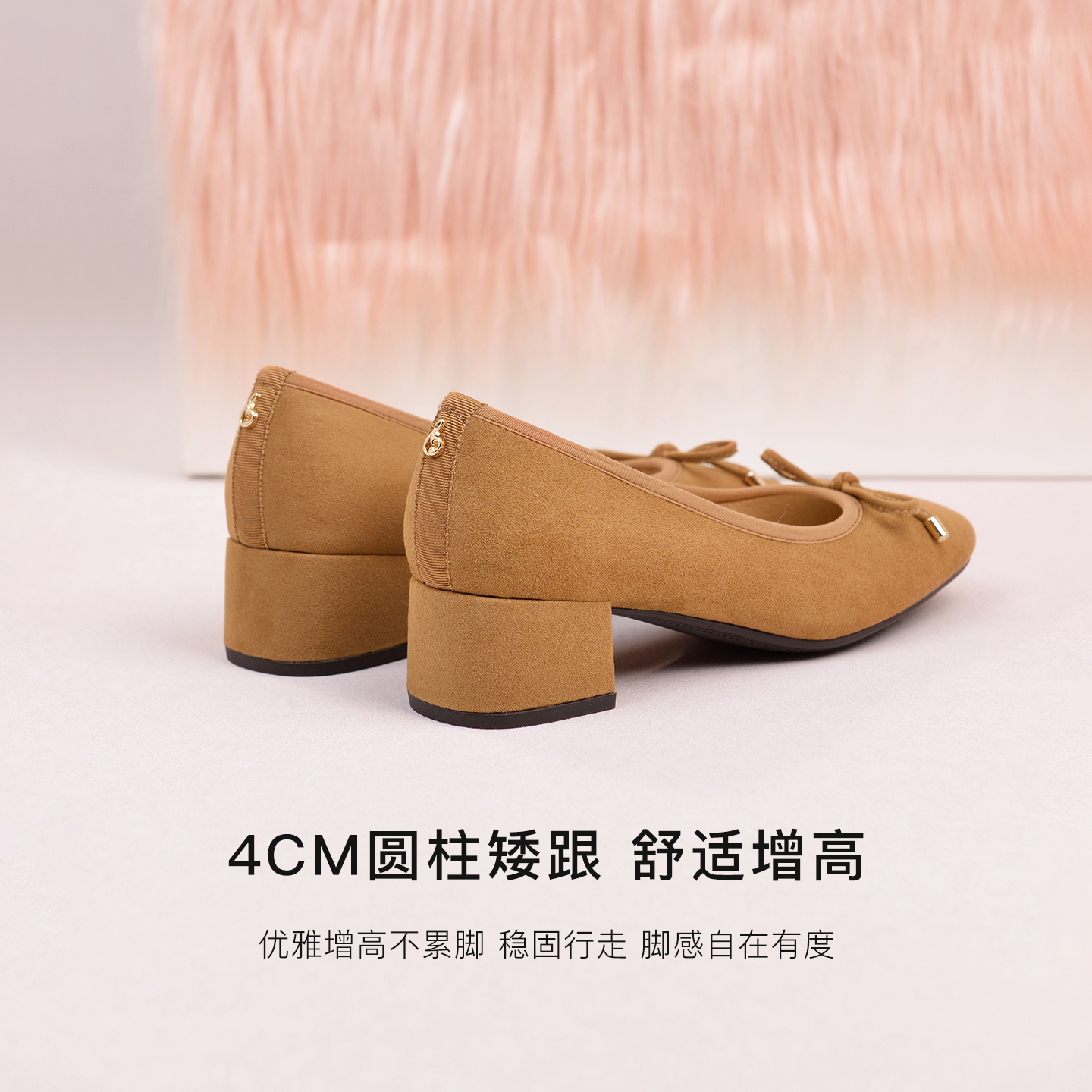 子D3S1DAQ5 真皮不累脚妈妈上班鞋 百丽粗高跟浅口单鞋 女2025新款