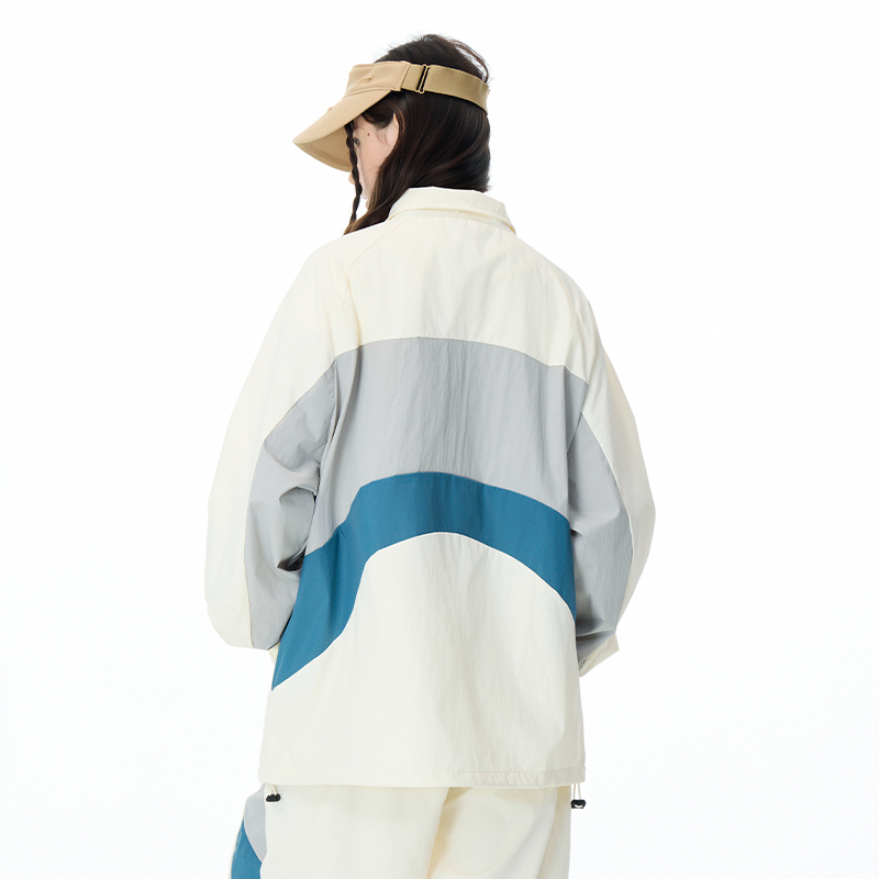 LAMLICKA拼接美式 户外防泼水潮牌宽松立领夹克 复古运动外套男秋季