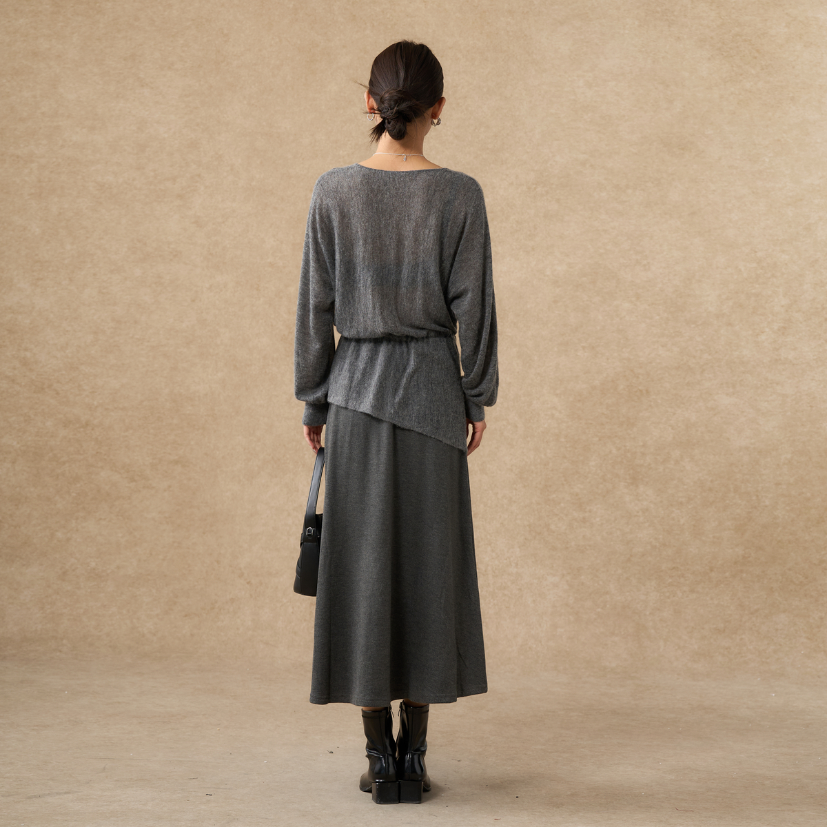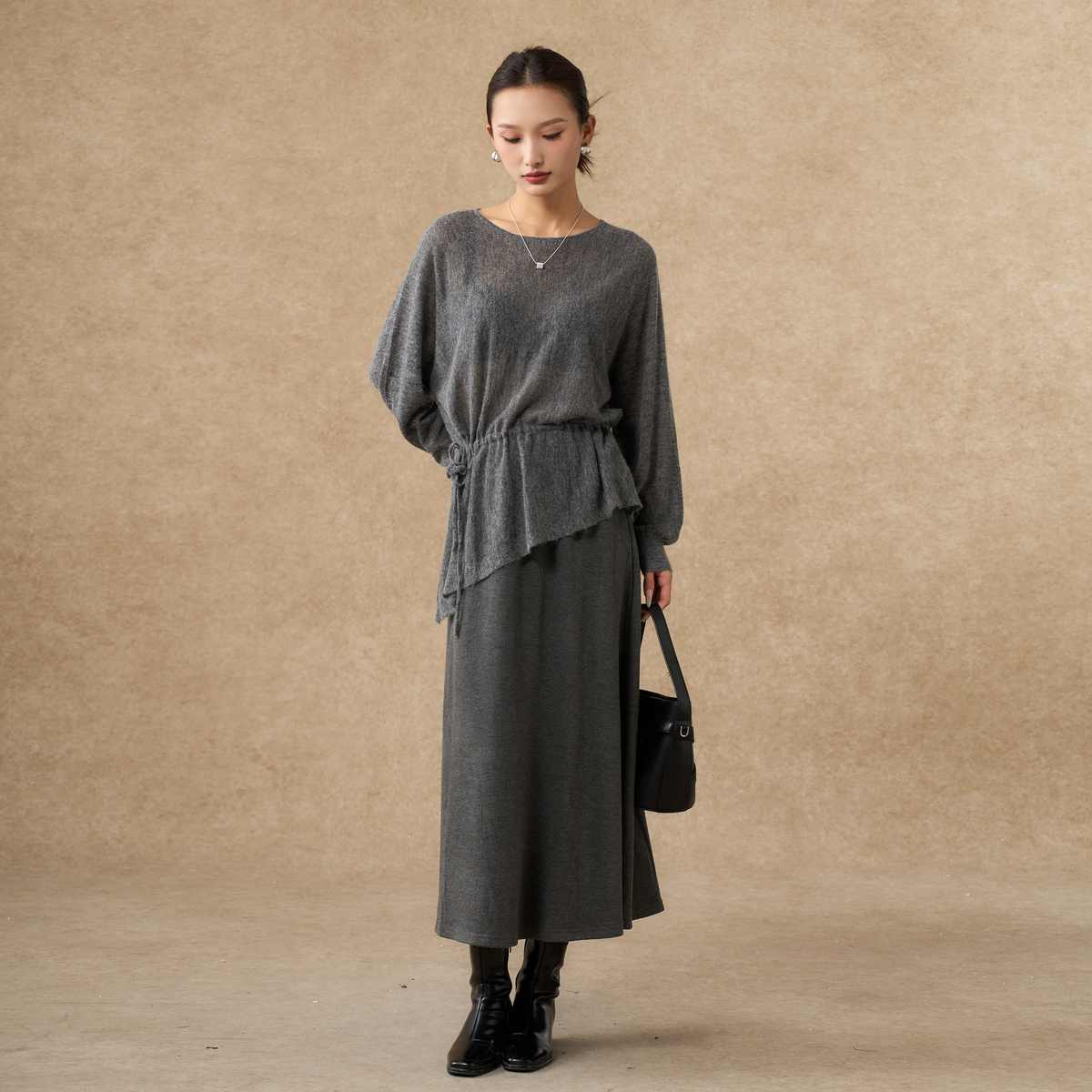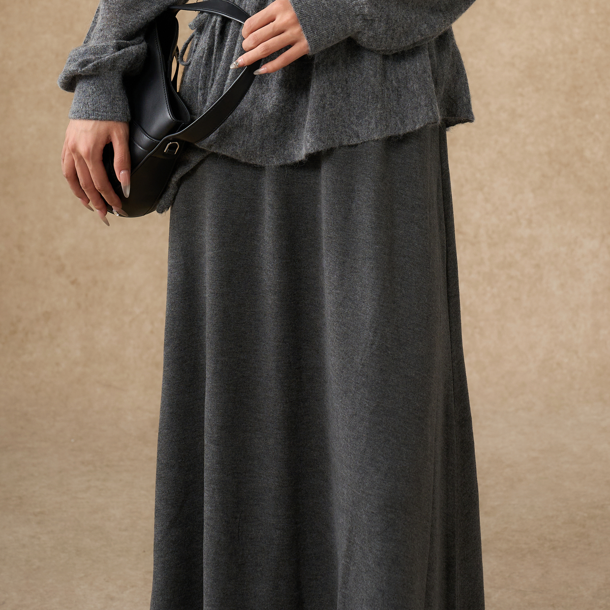 娅丽达松紧腰羊毛醋酸半身裙女秋冬2025新款 黑色裙子开叉直筒长裙