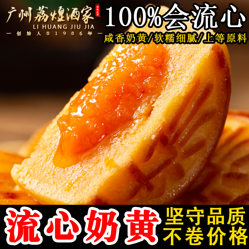 月饼传统中秋礼盒装 广州荔煌酒家纯流心奶黄月饼散装 广式