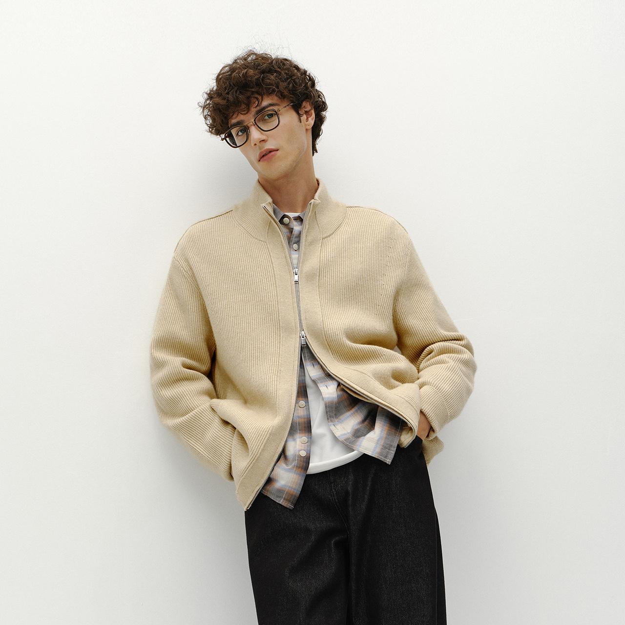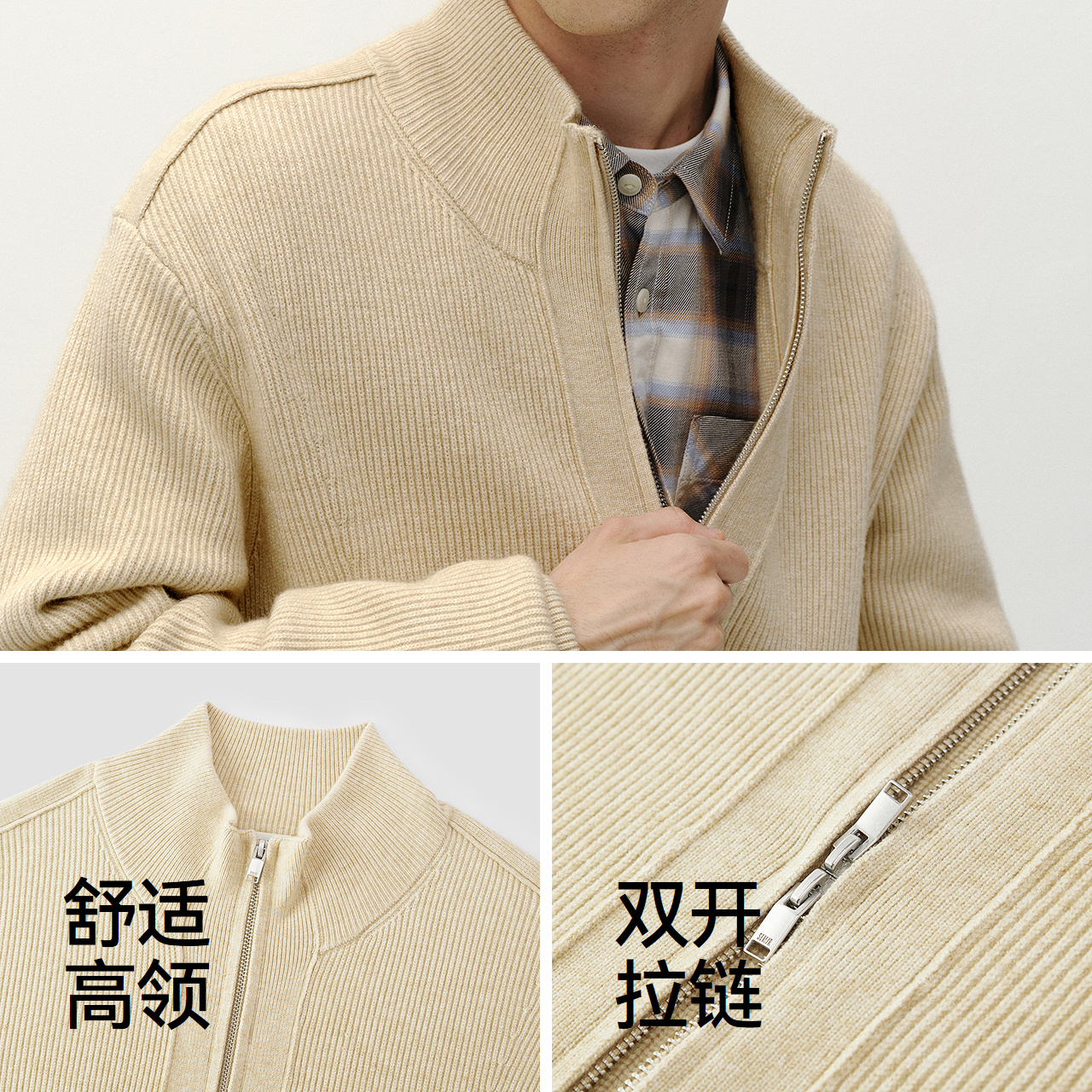 毛衣外套男立领夹克披肩春装 纽花纯色开衫 厚款 秋冬季 线衣 男针织衫