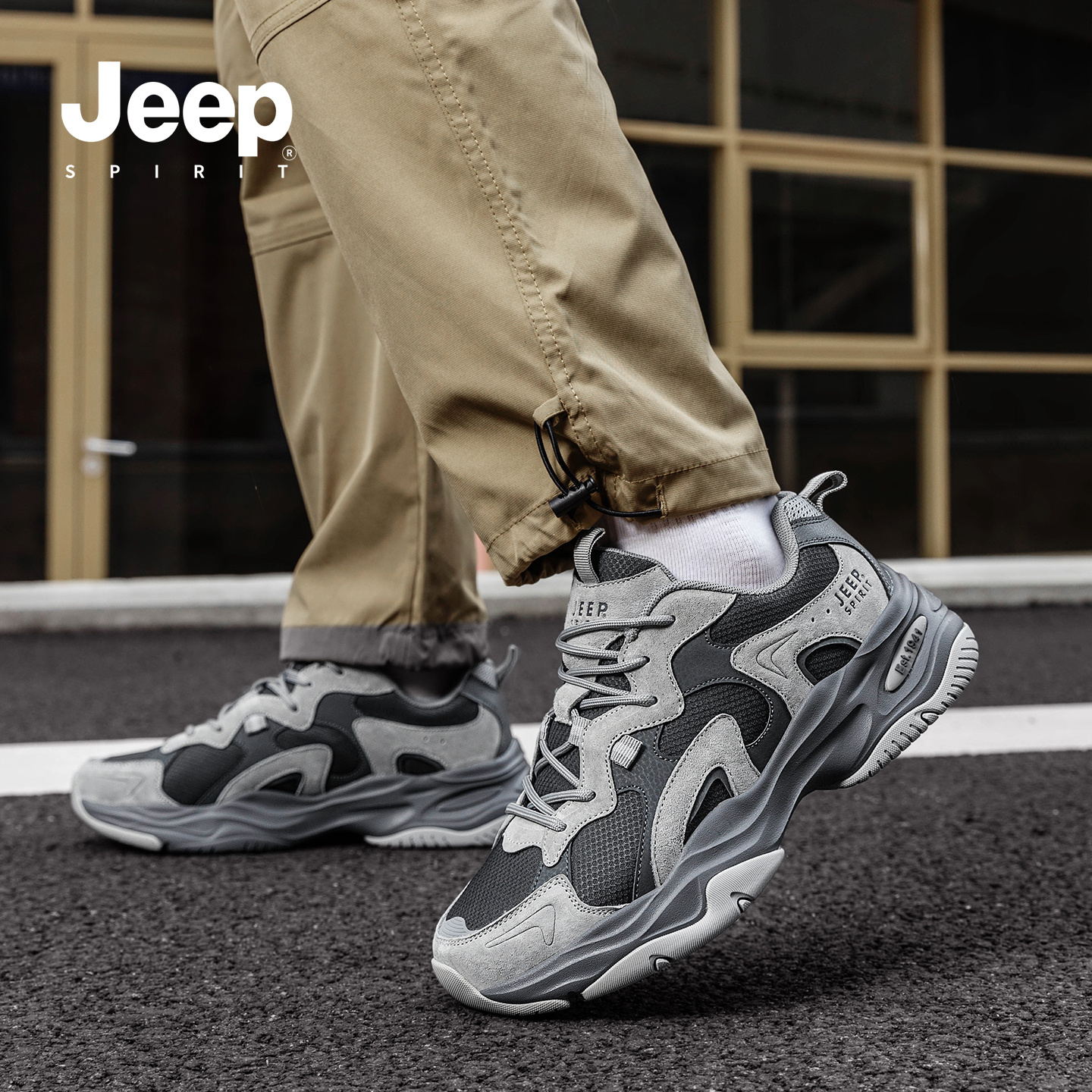 男2025秋季 老爹鞋 男士 厚底增高休闲鞋 jeepspirit吉普男鞋 男款 新款