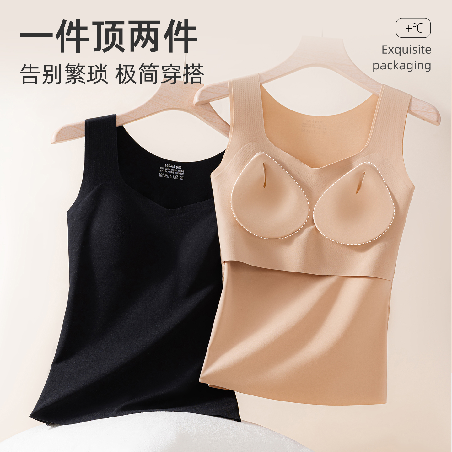 猫人无痕肌底衣保暖内衣女山茶抗菌免穿文胸秋冬季 打底美肤衣 薄款
