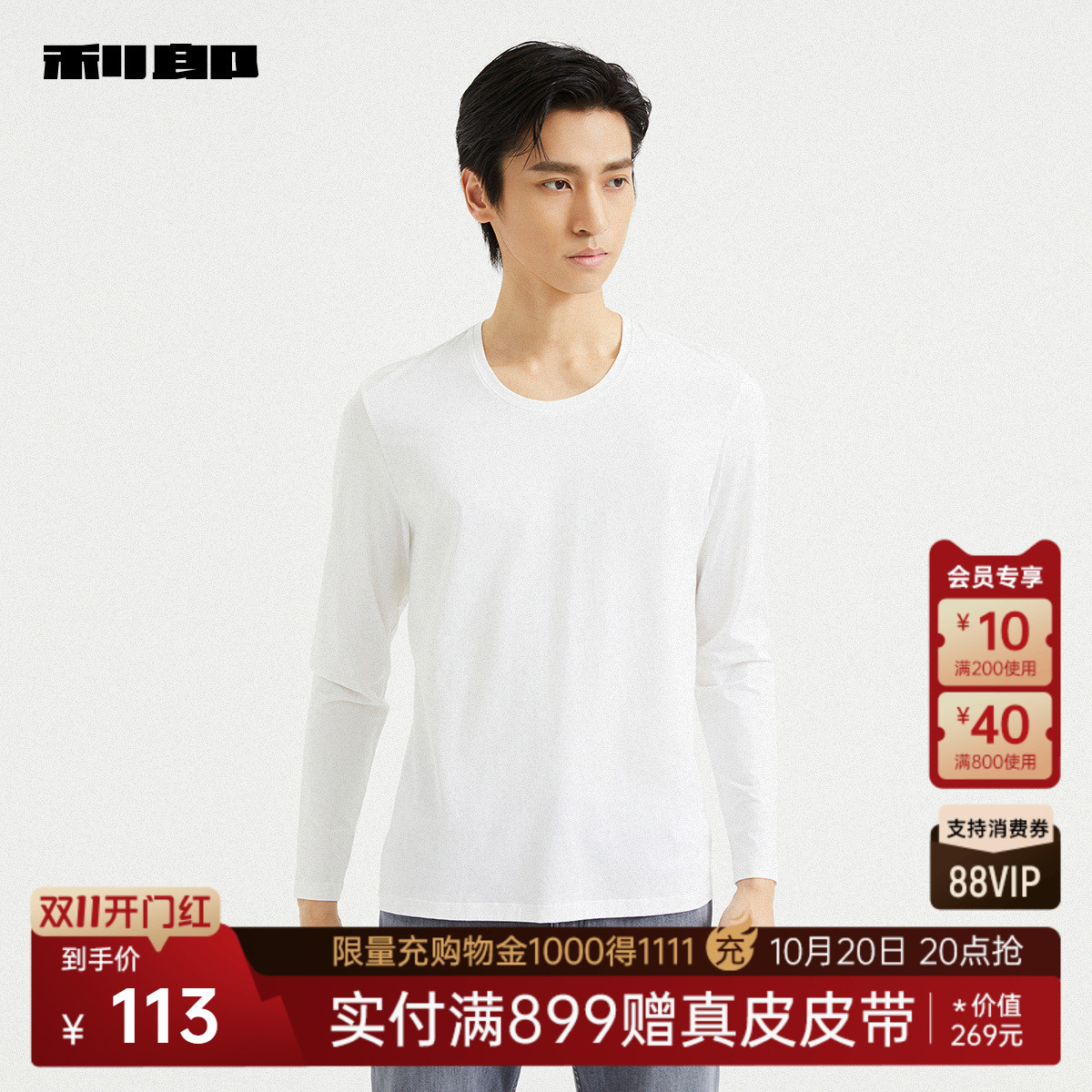 长袖 内衣打底衫 T恤男士 新款 男 舒适休闲圆领纯色2025秋季 利郎官方