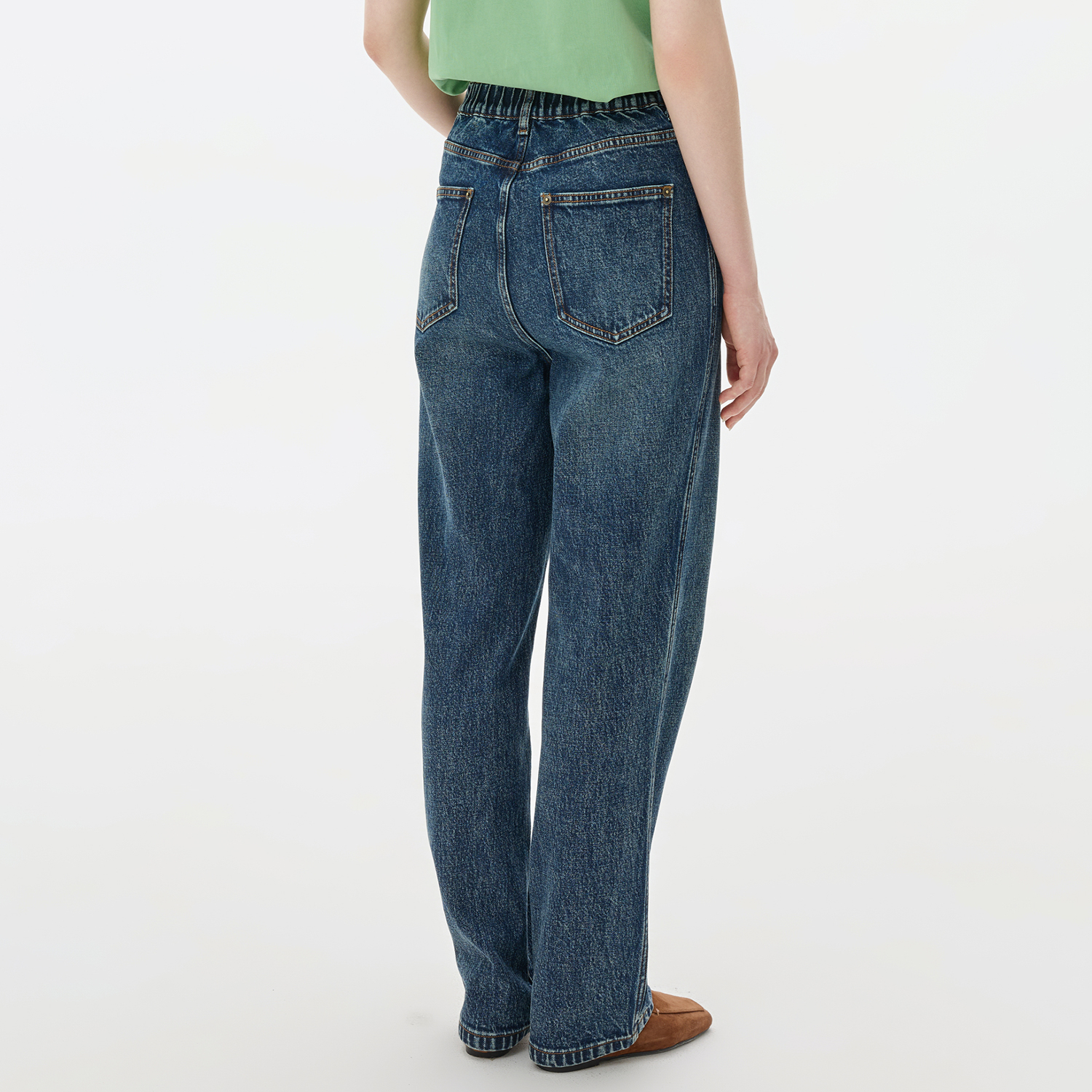 复古深色做旧直筒显瘦百搭牛仔长裤 新款 2025年秋季 热风女士牛仔裤