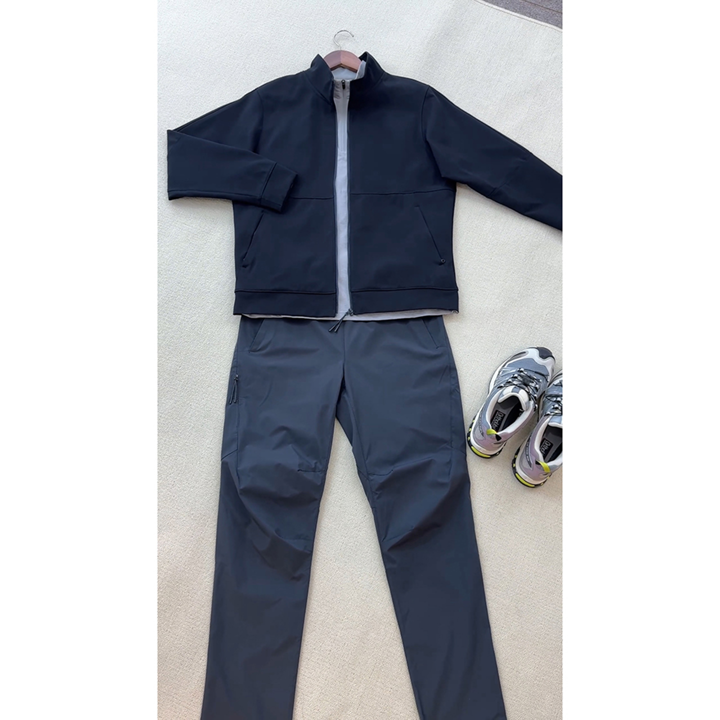 男款 子户外徒步登山裤 秋季 裤 侧拉链微喇工装 藏青色三防软壳冲锋裤