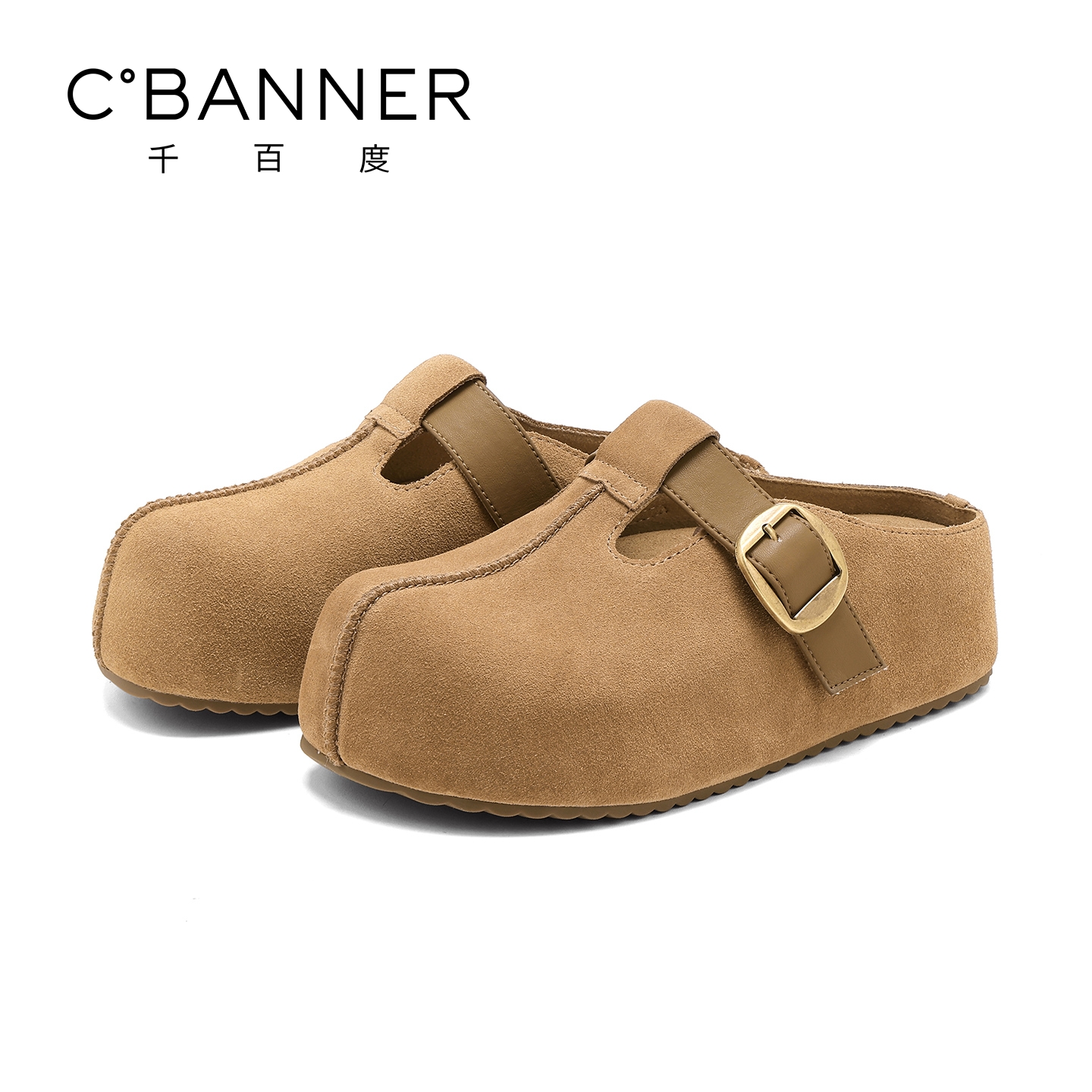 勃肯鞋 千百度女鞋 厚底一脚蹬懒人包头拖半托外穿拖鞋 新款 2025秋季