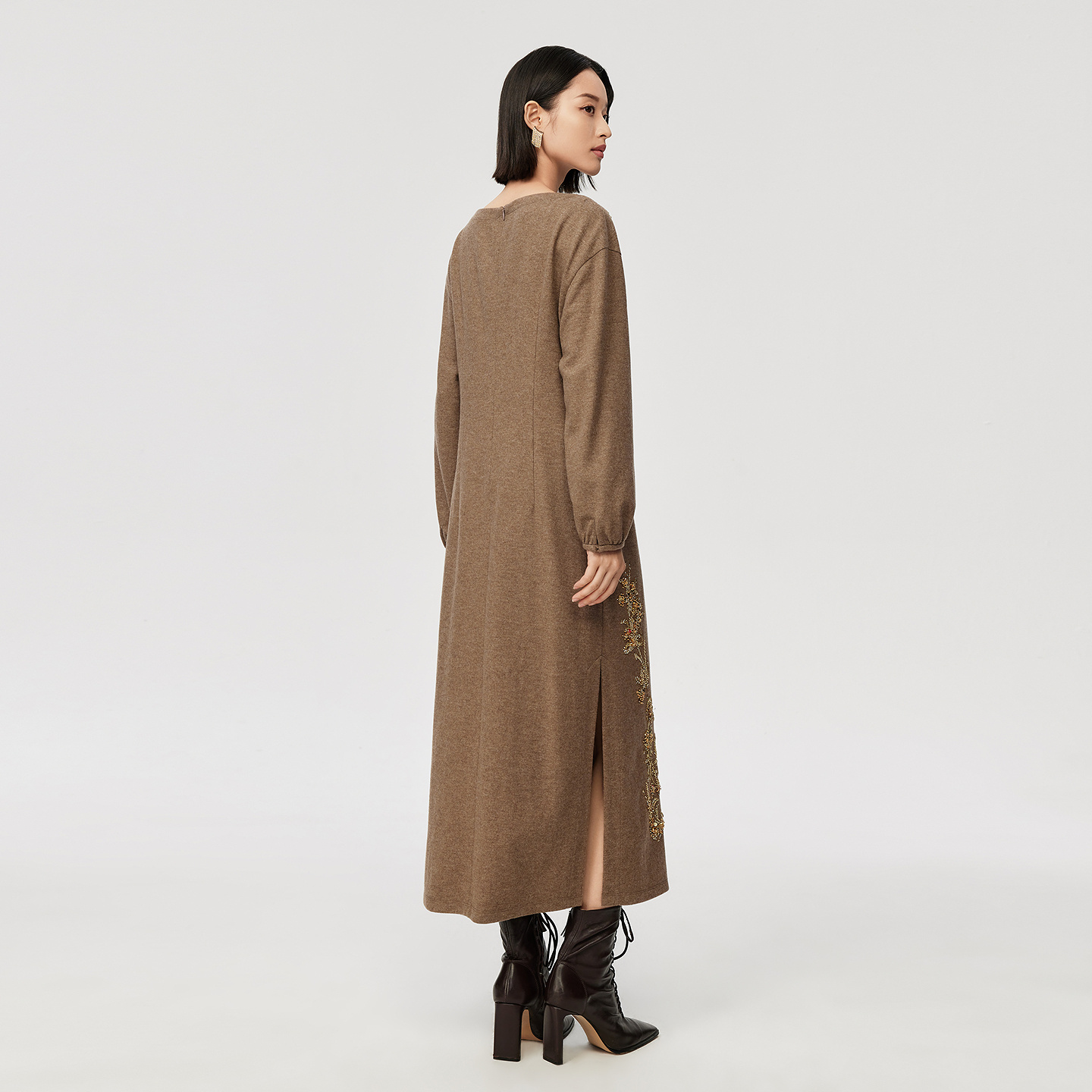 连衣裙上下拼接25秋透气吸汗裙子 NAERSI娜尔思钉珠长袖 免定金