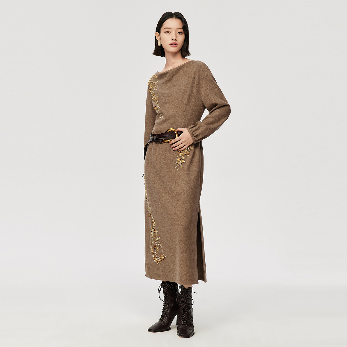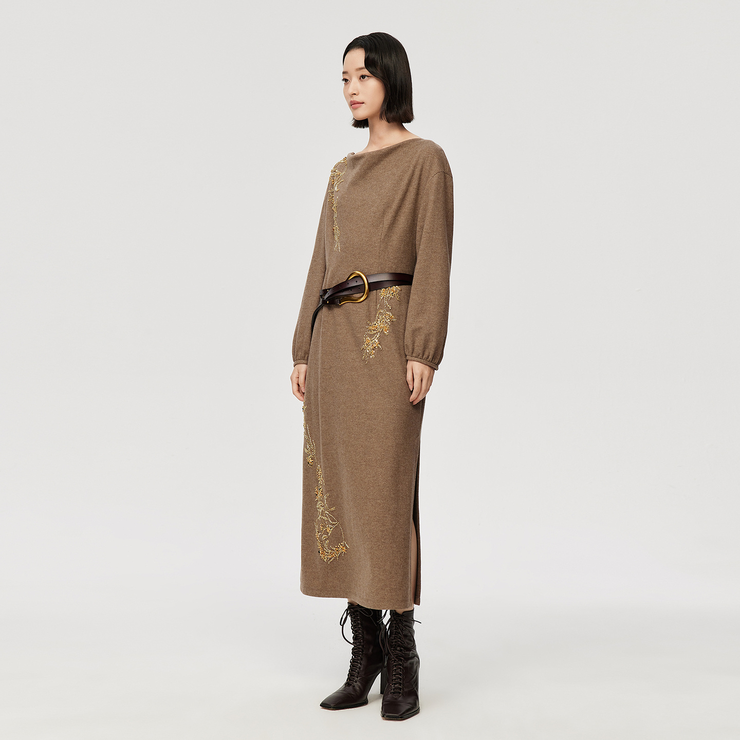 v领微收腰毛织连衣裙25秋 MAXRIENY游牧风穿搭长袖 优雅游牧