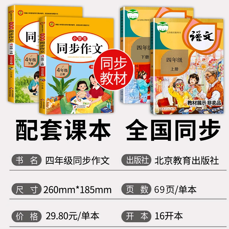 2025四年级上册同步作文配套人教版 小学语文满分优秀作文精选专项训练黄冈老师四下A 4年级下册小学生作文书大全同步作文四上推荐