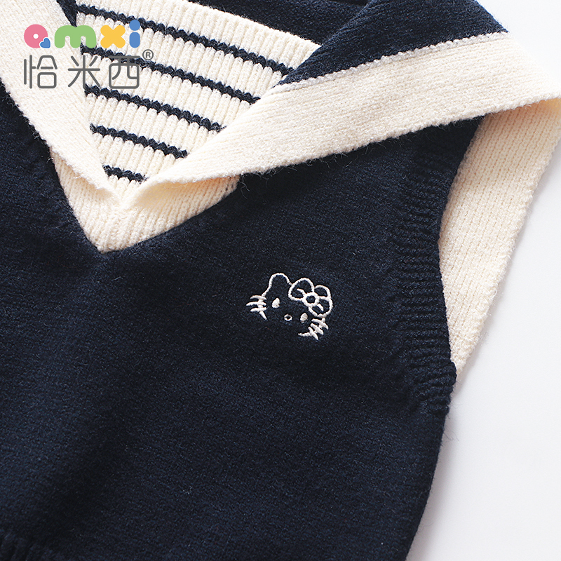 马甲开衫 绿色甜美双排扣针织毛衣连衣裙女秋冬新款 氛围感穿搭无袖