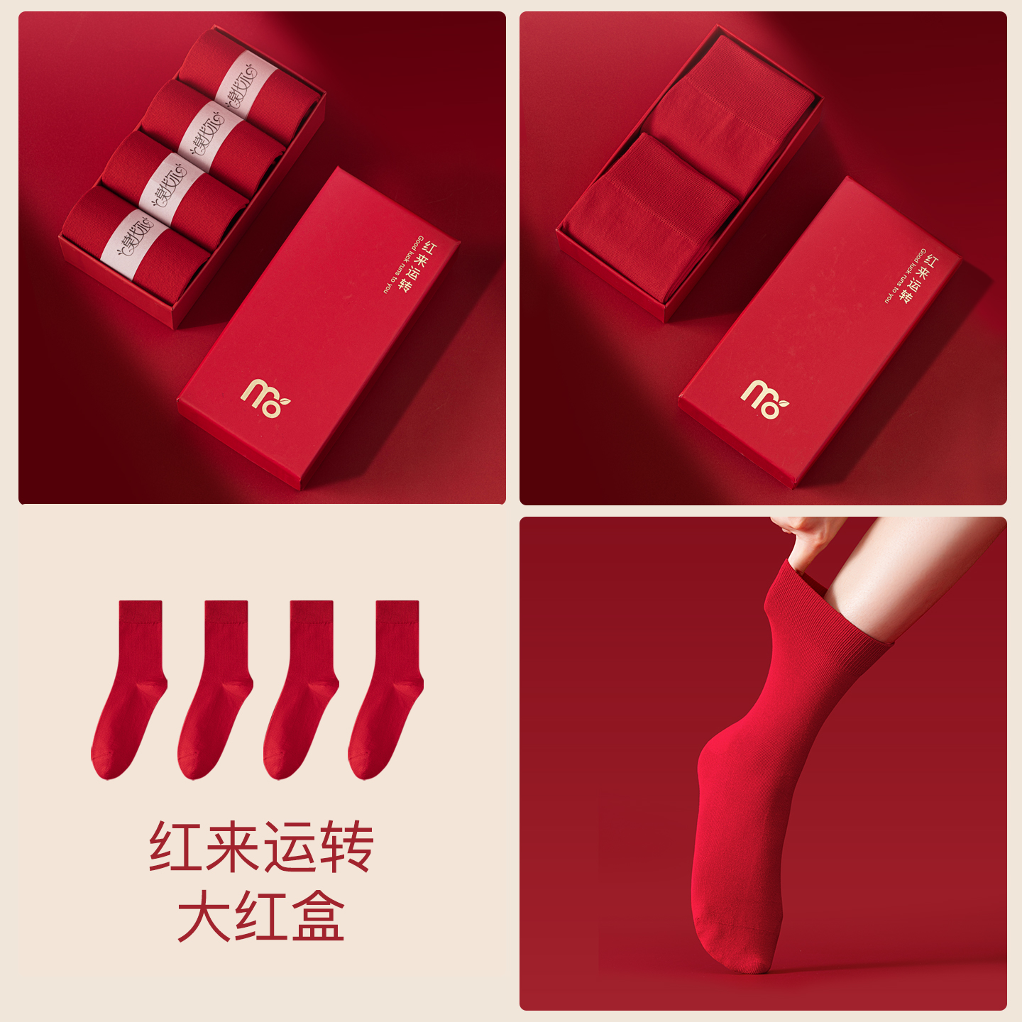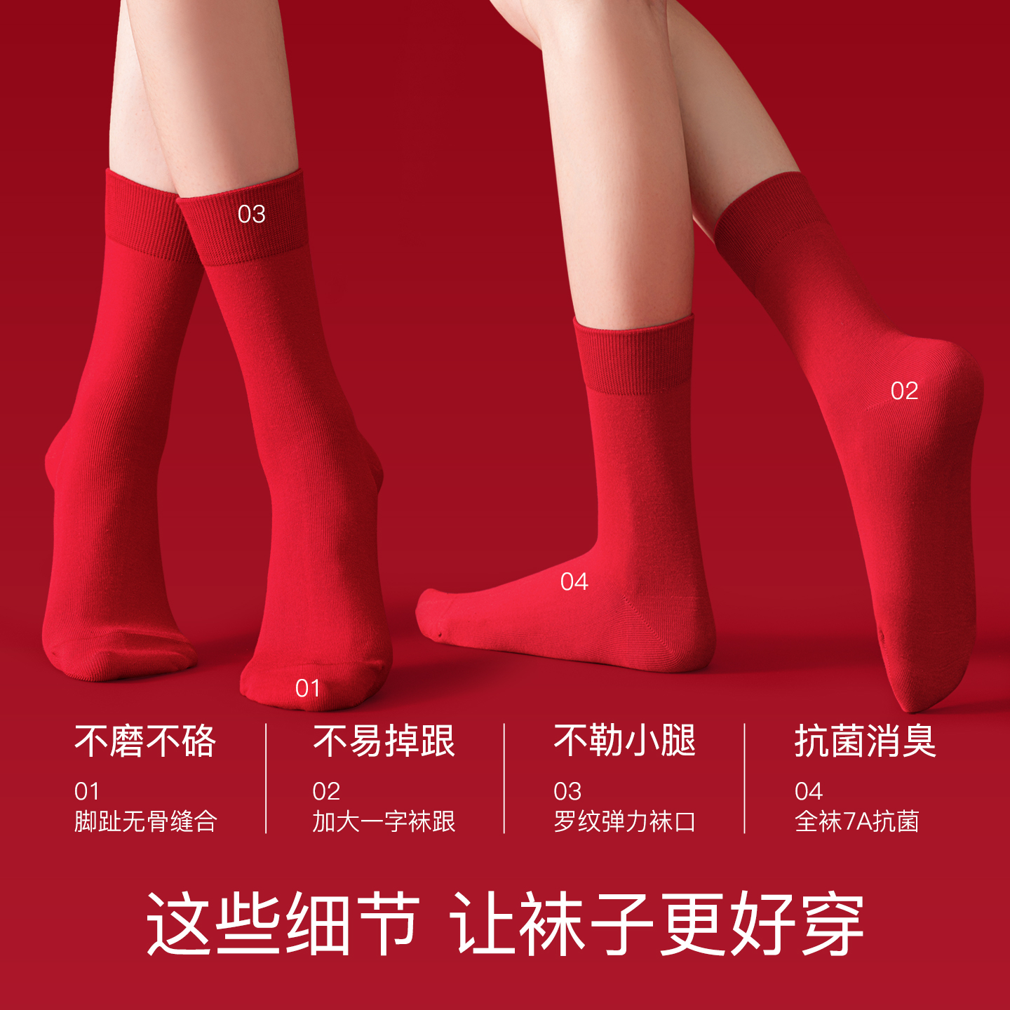 本命年红袜子女款 春秋中筒喜袜纯棉防臭结婚情侣一对新年礼盒男款