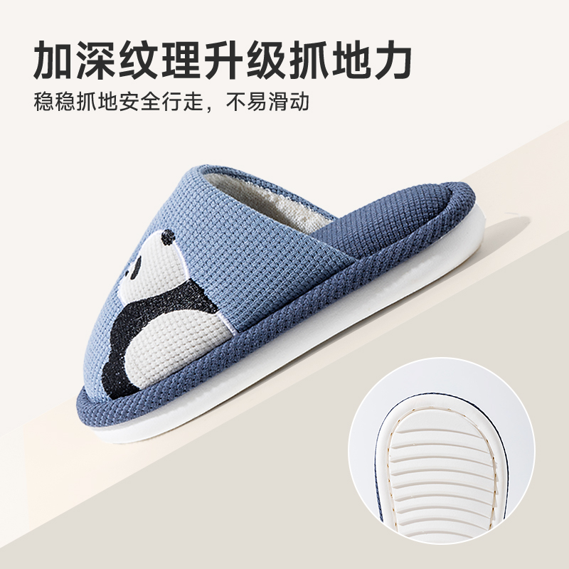 小女孩居家室内防滑亲子熊猫麻拖鞋 秋冬季 男童2025新款 儿童棉拖鞋