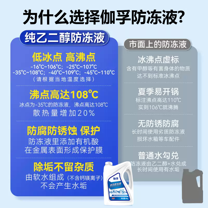 伽孚防冻液汽车发动机冷却液车用水箱宝红色绿色轿车货车防冻防沸