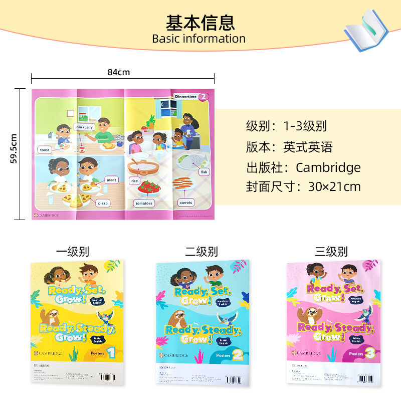 Ready Posters 进口 Cambridge 挂图 6岁幼儿园启蒙早教教材 原版 教学海报 Set 剑桥幼儿英语教材 Grow 3级
