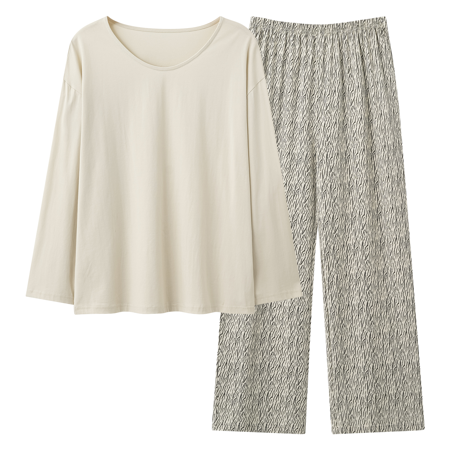 简约可外穿家居服套装 都市丽人长袖 睡衣女士纯棉带胸垫2025年新款