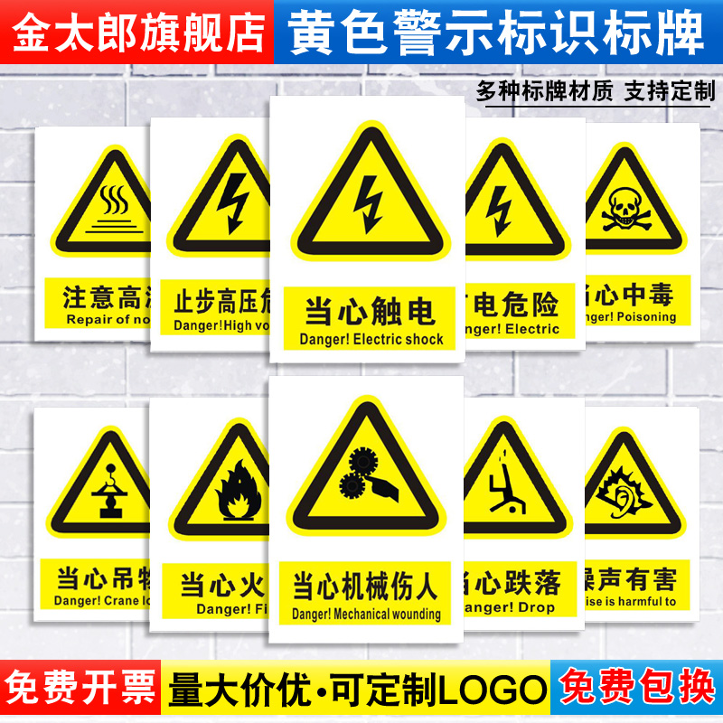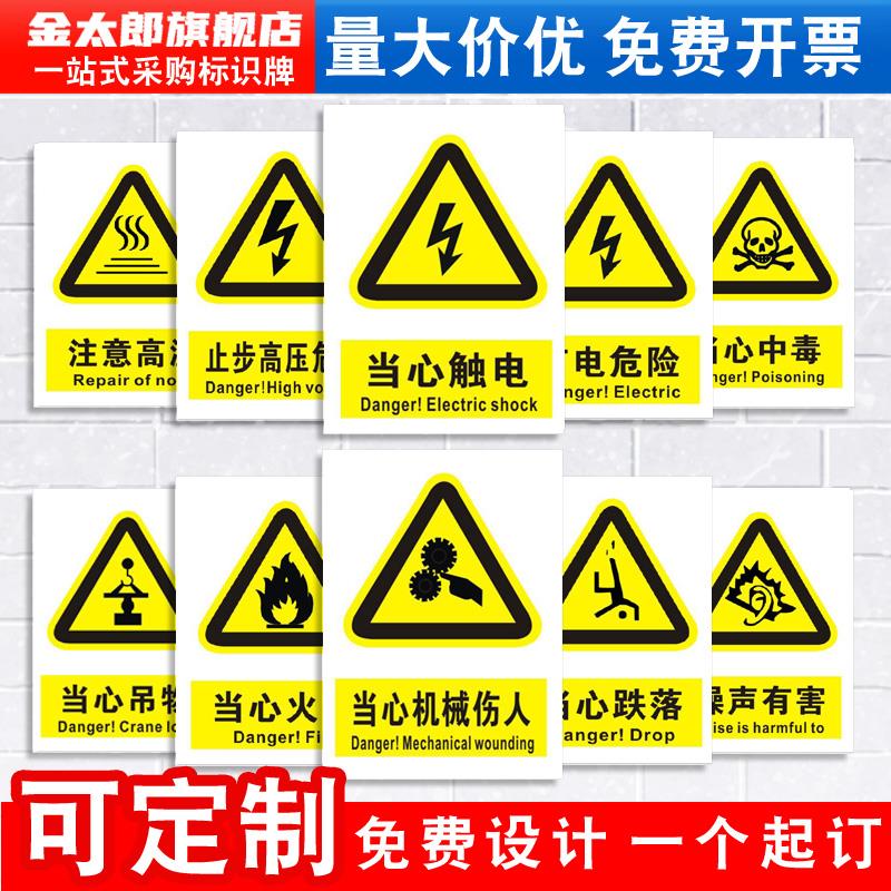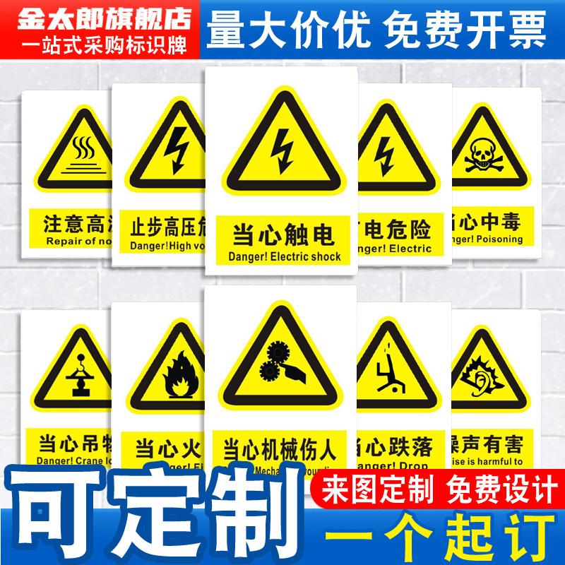 警示安全标识牌小心有电危险当心触电机械伤人腐蚀高温注意内有监控警告提示指示标语牌贴纸墙贴标志标示定做