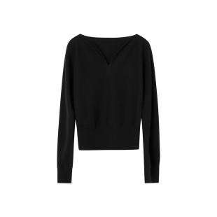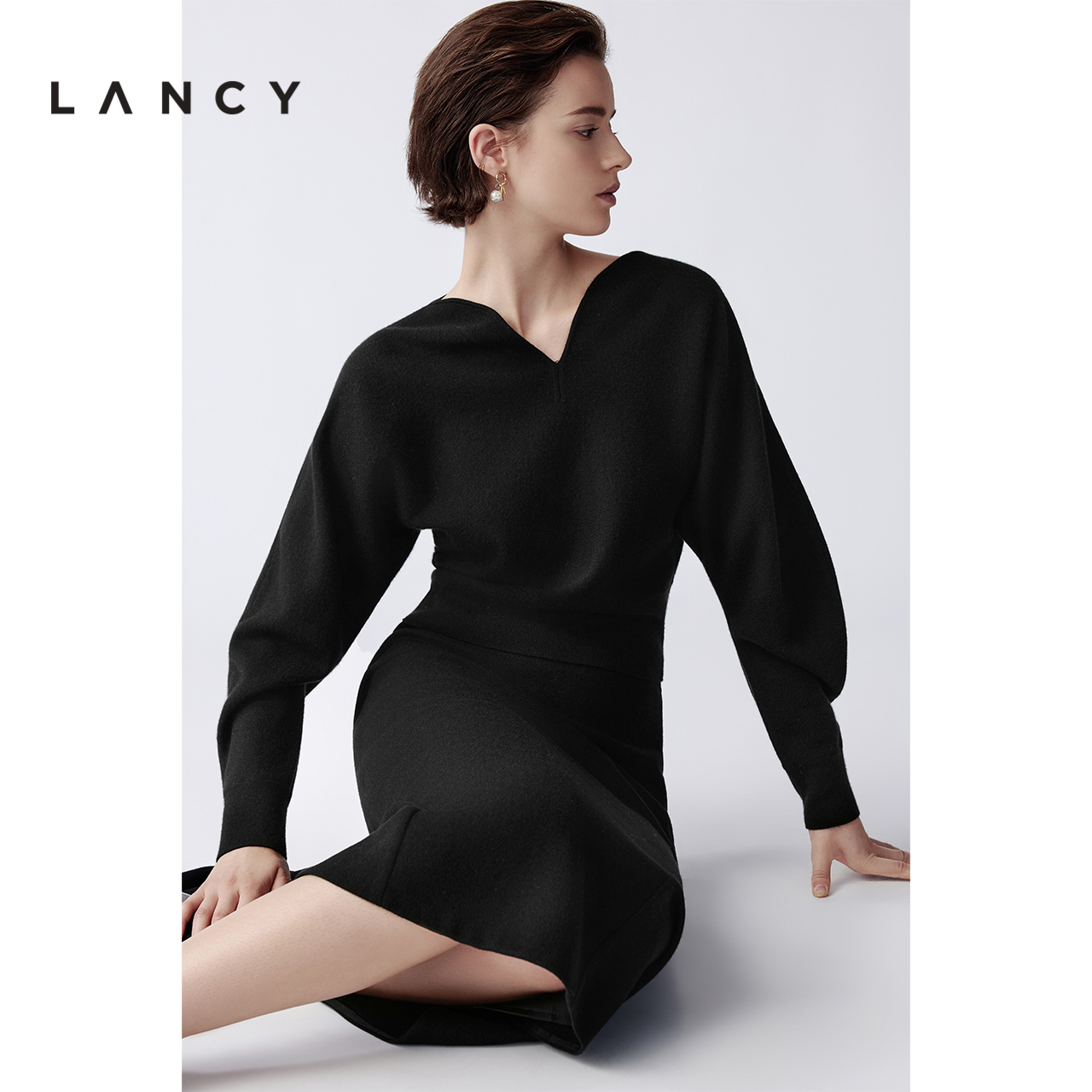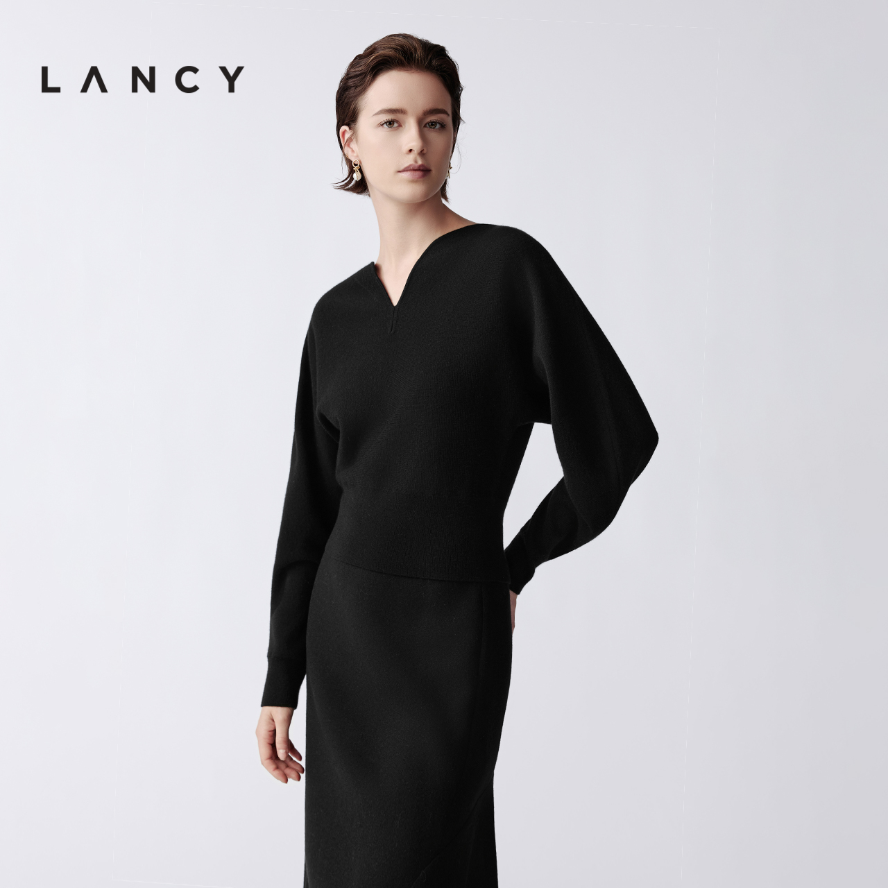 朗姿2025冬新款 LANCY 法式 气质V领黑色短款 女 针织衫 羊毛羊绒