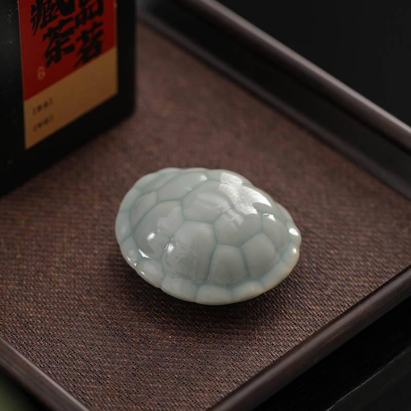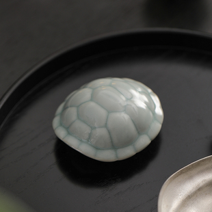 汝窑富甲一方茶宠摆件创意陶瓷可养开片龟壳盖置茶台茶道配件茶玩