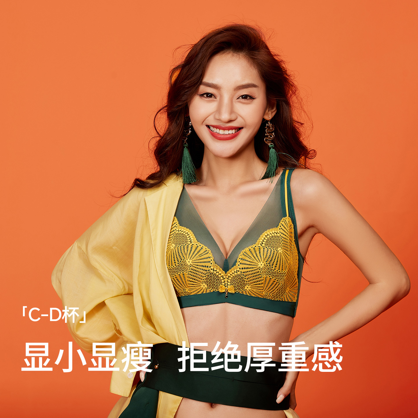 西维娅调整型文胸轻薄兔耳杯大胸显小内衣软钢圈提拉收副乳胸罩