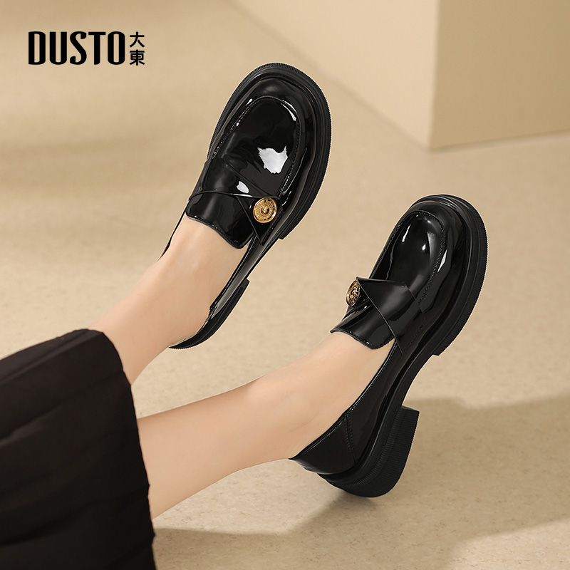 女2025新款 女鞋 秋季 英伦小皮鞋 老钱风黑色单鞋 大东官方厚底乐福鞋