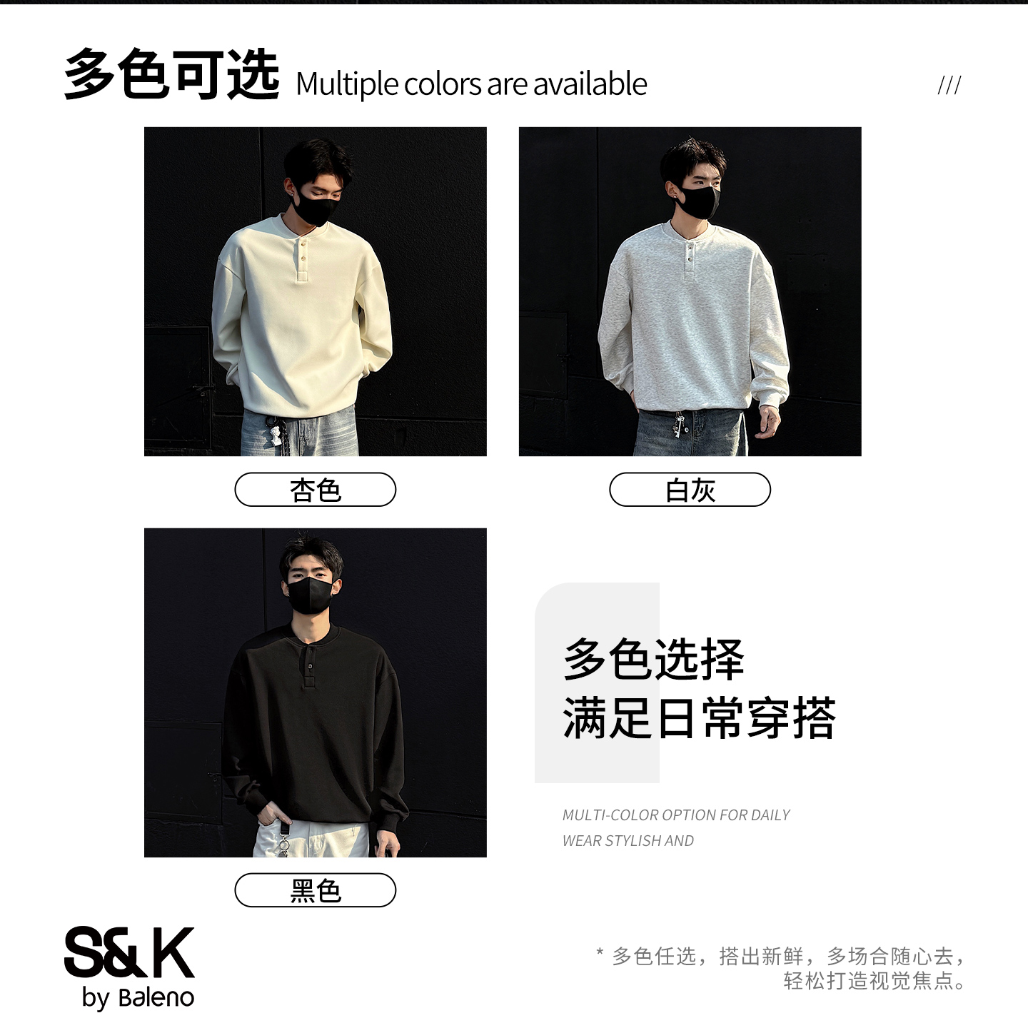 t恤纯色日系打底衫 340g重磅纯棉卫衣男2025秋冬新款 宽松厚实长袖
