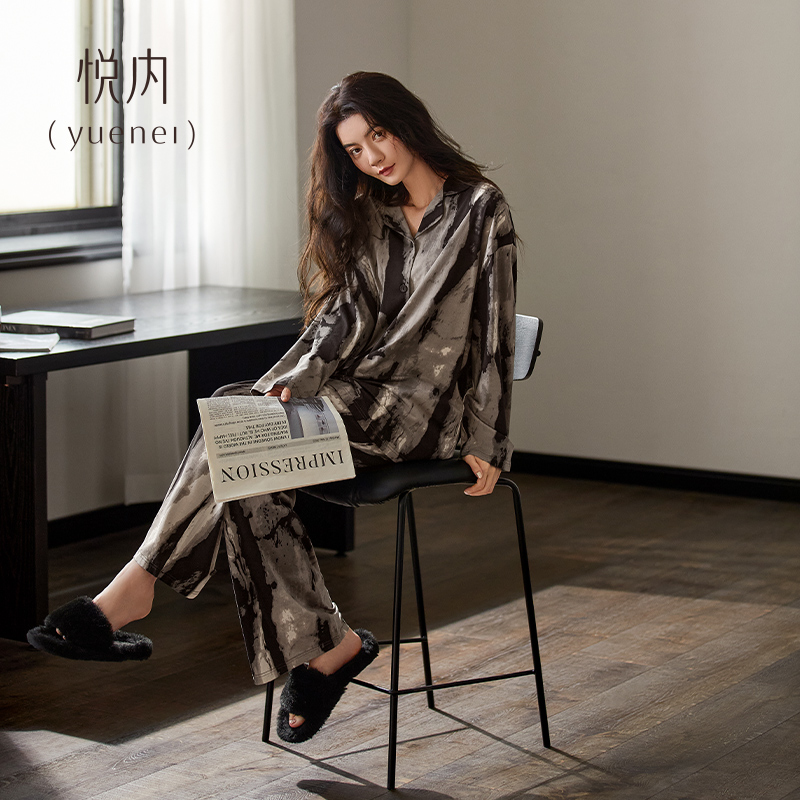 冬季 2025新款 长袖 长裤 猫人纯棉睡衣女款 简约休闲家居服套装 春秋季