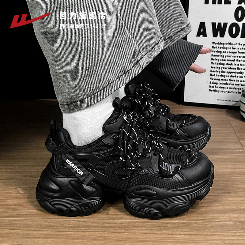厚底舒适情侣复古休闲运动鞋 回力女鞋 秋季 2025新款 子女 黑色老爹鞋