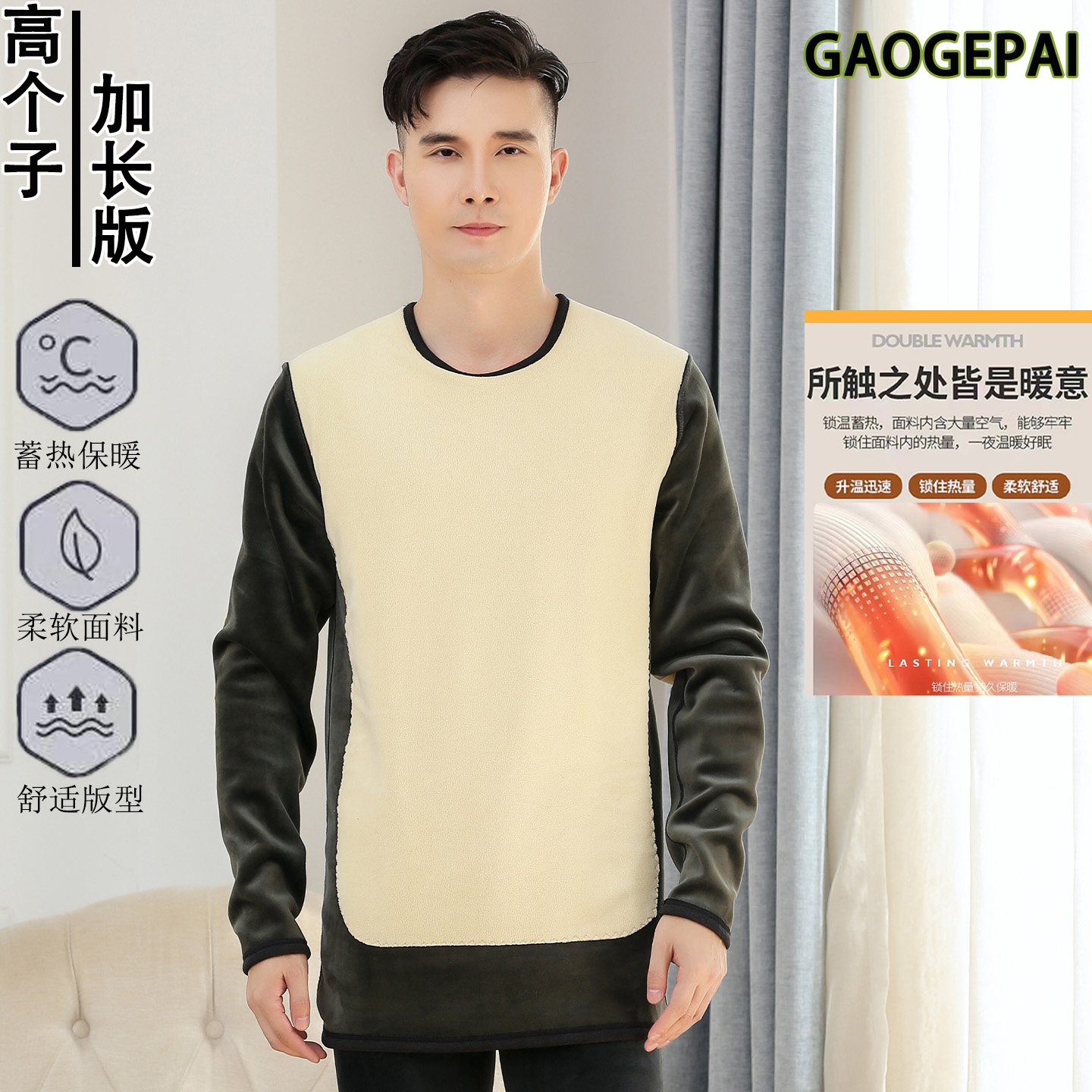 发热加绒单件上衣 秋衣秋裤 ubras羽绒化羊毛男士 保暖内衣套25新款