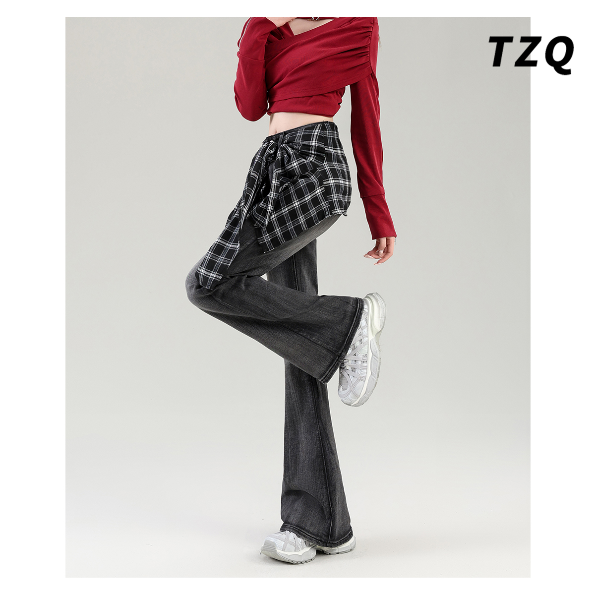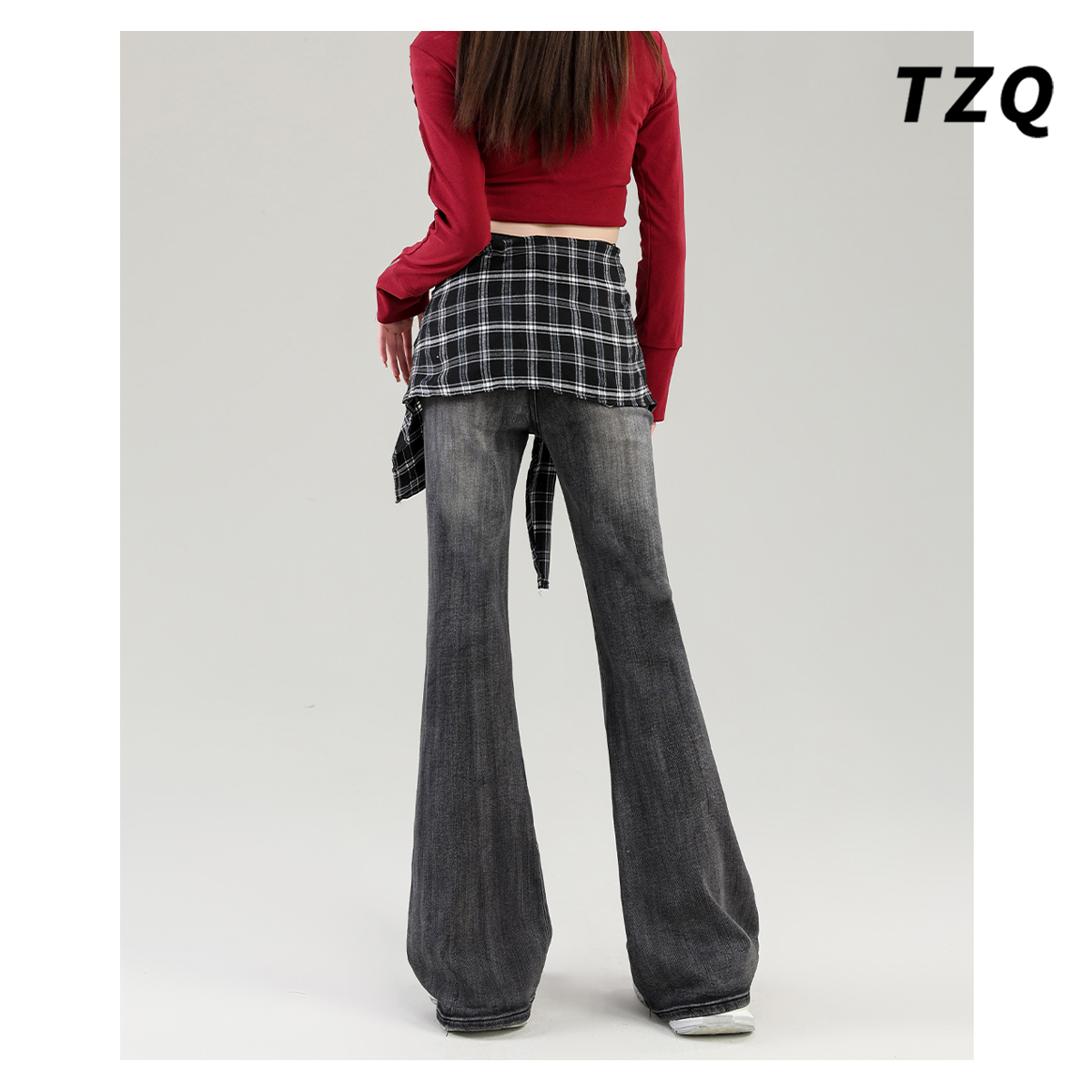 分割线显瘦直筒宽松长裤 热风女士直筒牛仔裤 时尚 新款 2025年秋季