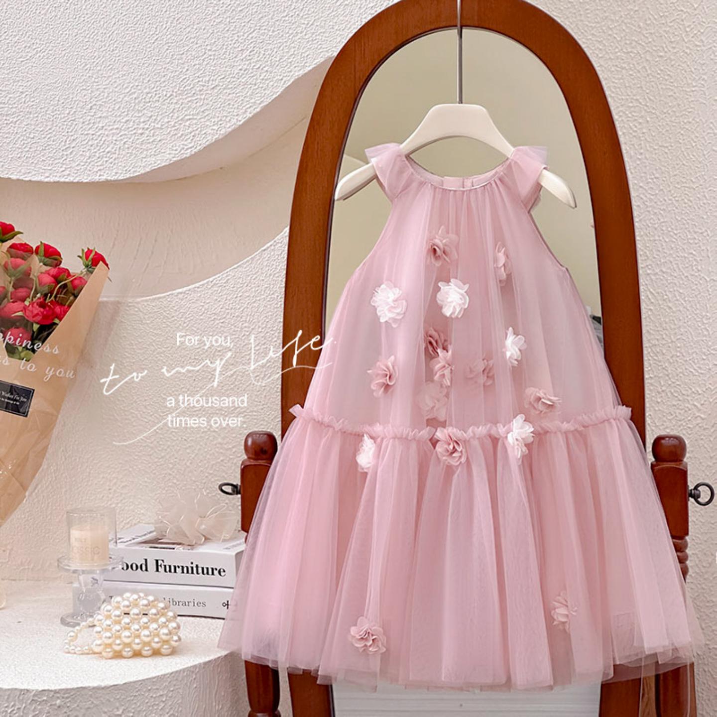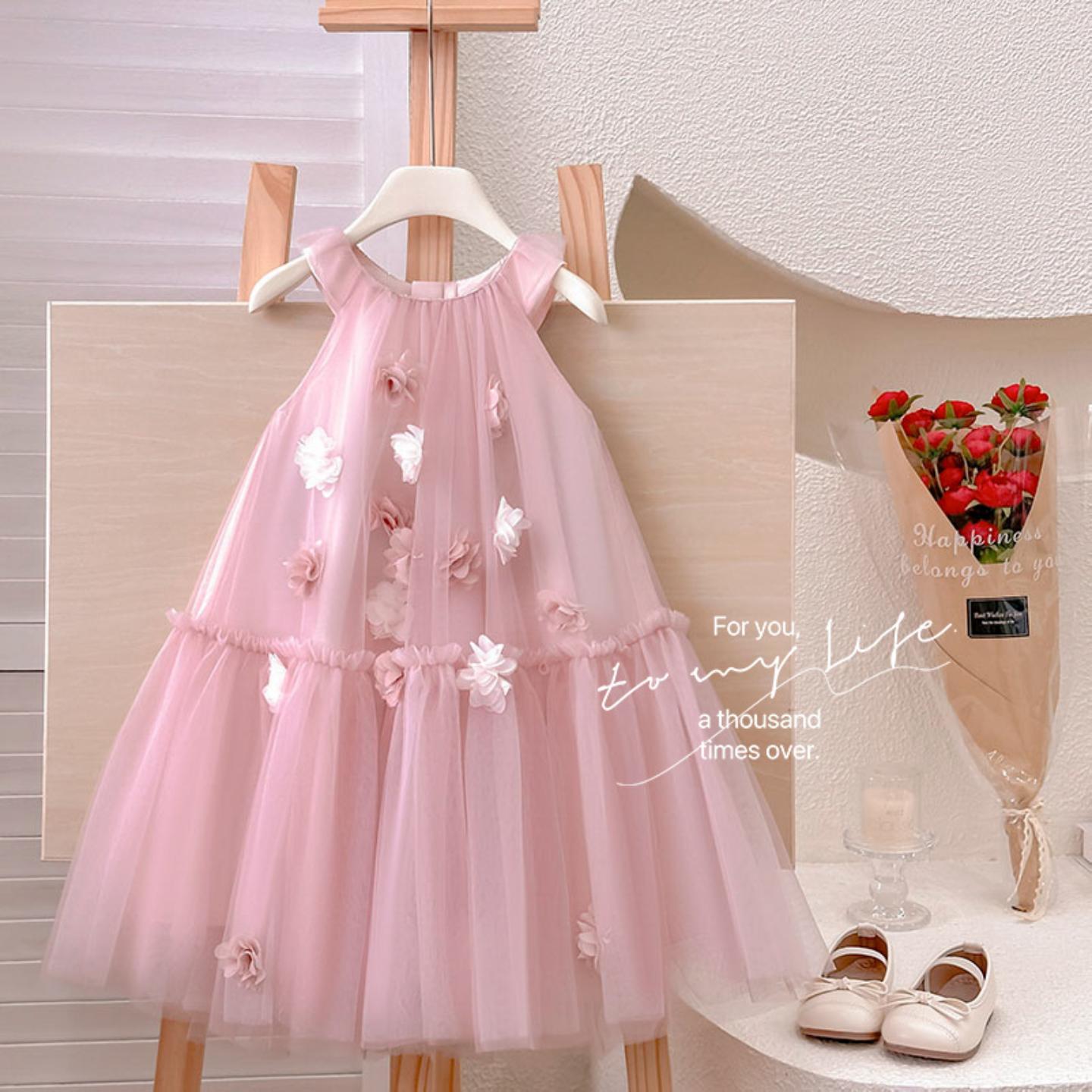 洋气花朵无袖 新款 女童裙子2025夏季 公主连衣裙背心裙 现货秒发