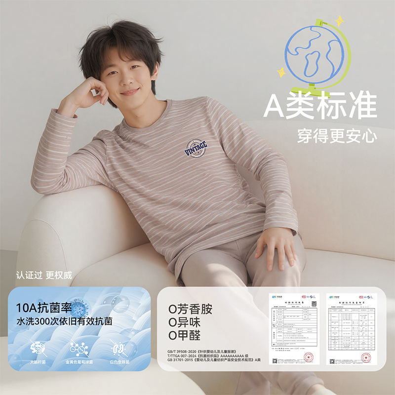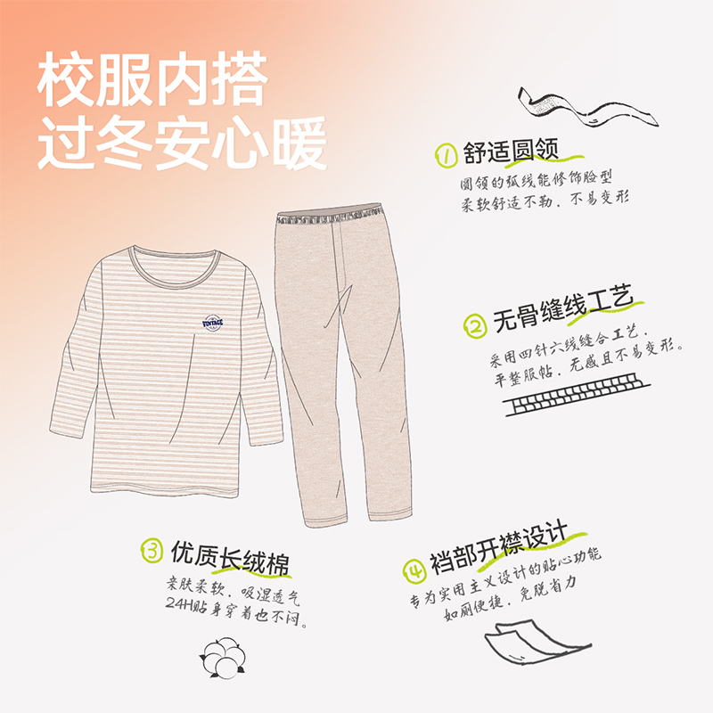 舒绒棉宽松 男童儿童纯棉全棉a类线衣线裤 棉致青少年秋衣秋裤 套装