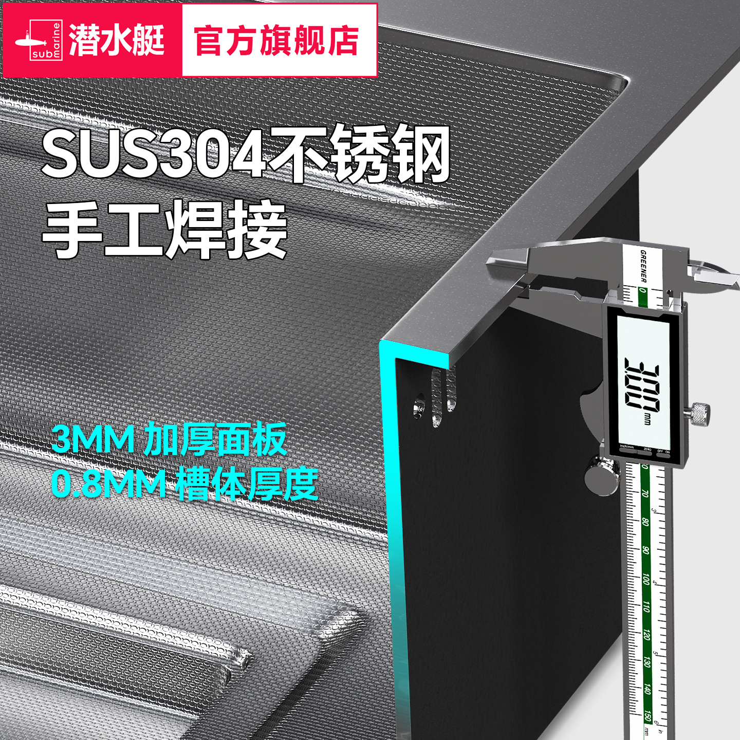 潜水艇304不锈钢水槽手工大单槽厨房洗菜盆台下带隔渣滤渣洗碗槽