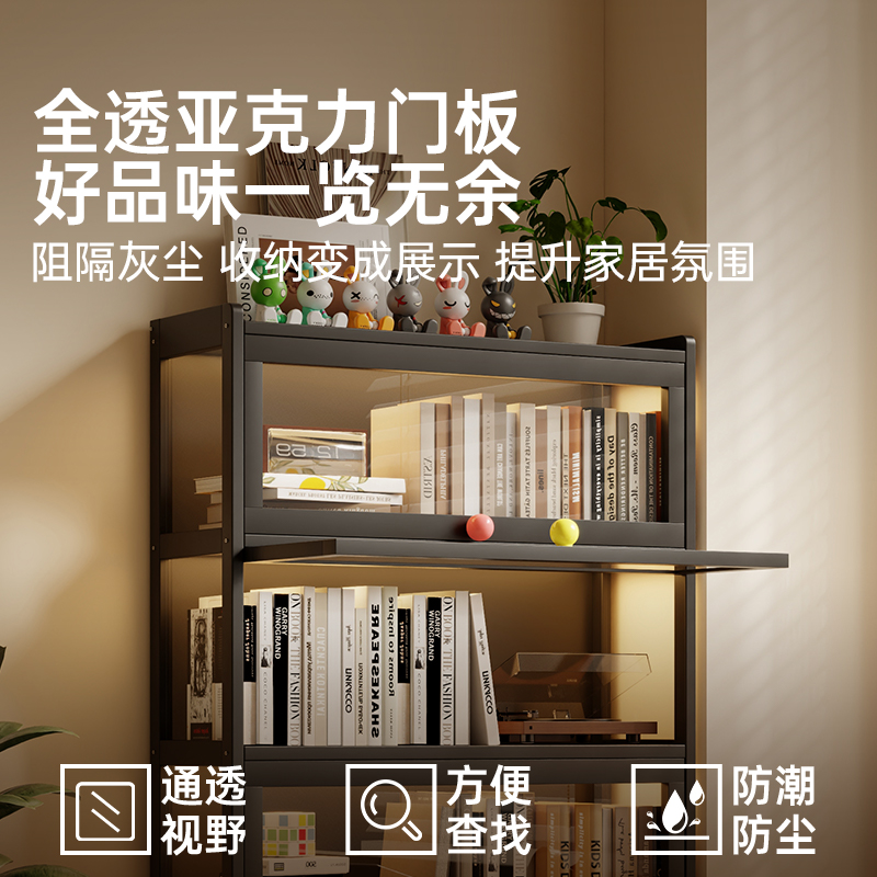手办柜带灯极窄展示柜亚克力储物柜客厅书架落地置物架绘本收纳架