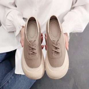 舒适休闲女鞋 2025新款 软底厚底运动鞋 乐福鞋 棕色百搭系带 春秋季