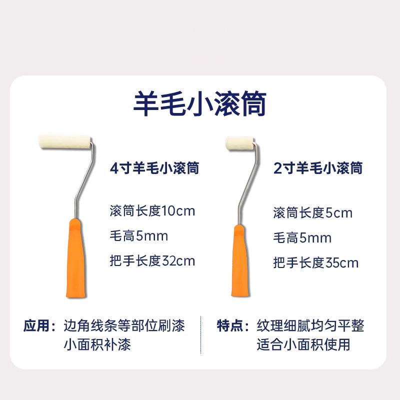 2寸4寸羊毛滚筒刷短毛小滚筒油漆小拇指补墙边角乳胶漆迷你小滚刷