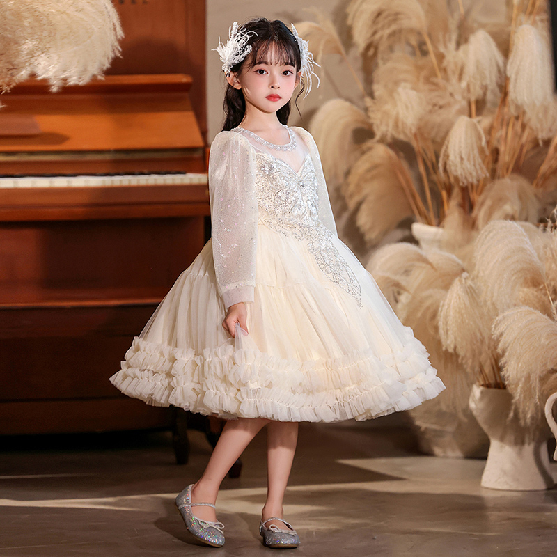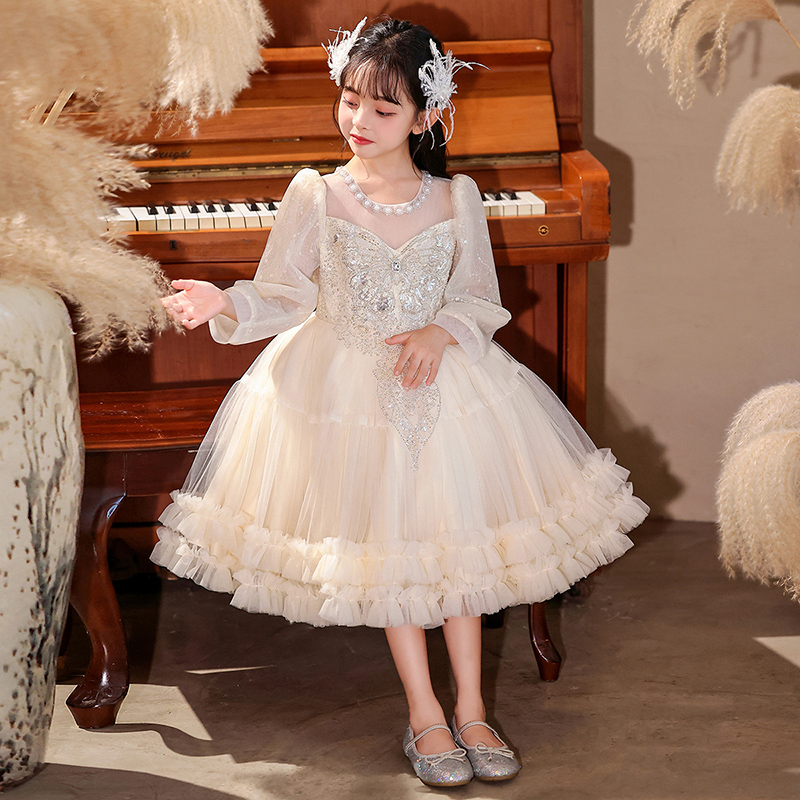女童轻奢高端主持人生日花童晚礼服小众儿童蓬蓬裙洋气钢琴演出服