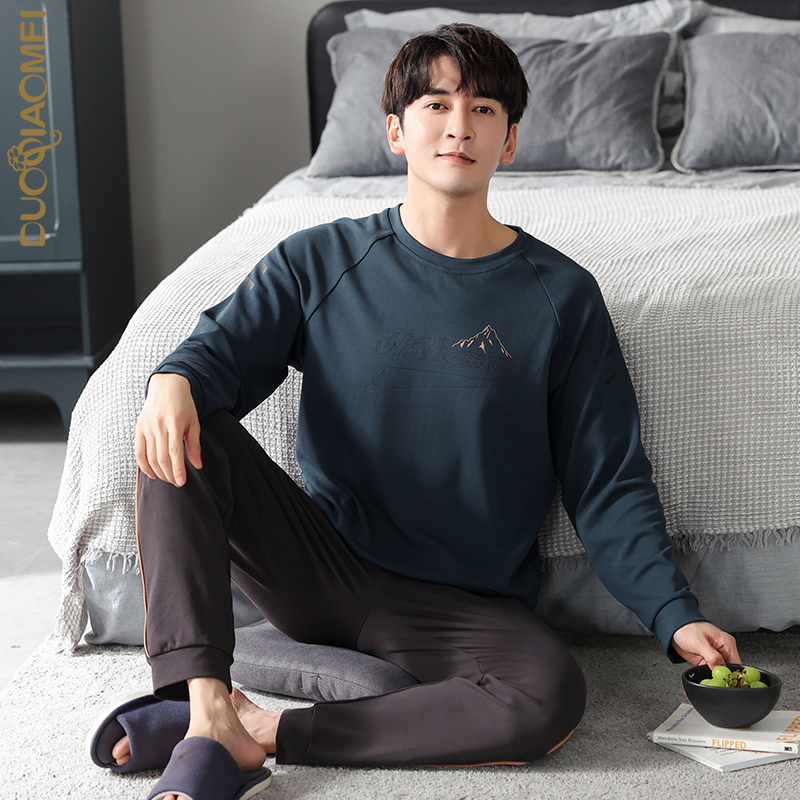 纯棉秋冬大码 长袖 男薄款 青年套装 居家服 男士 2025年新款 睡衣春秋季
