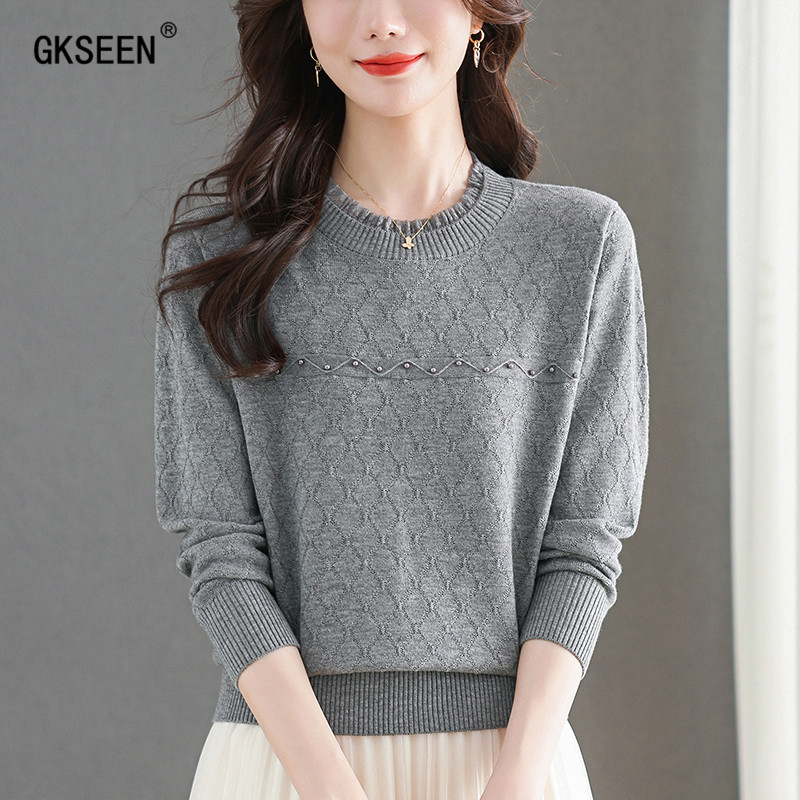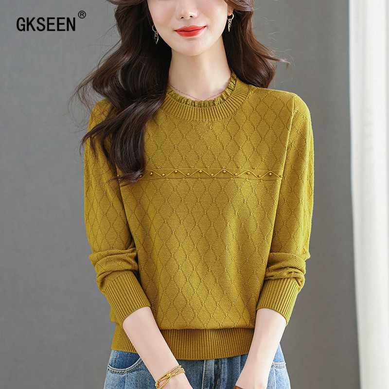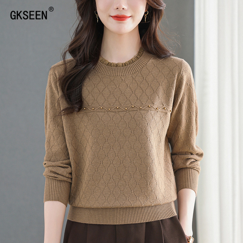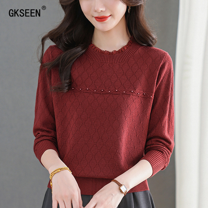 洋气蕾丝花边打底衫 长袖 时尚 女2025年秋冬新款 外穿内搭毛衣 针织衫
