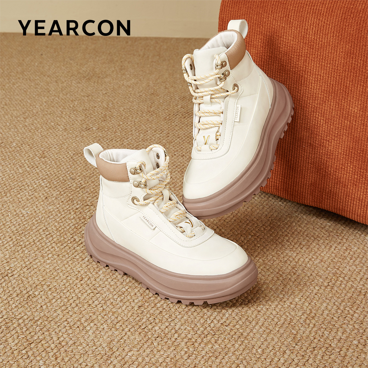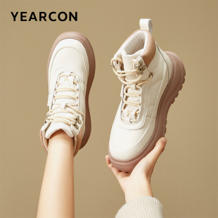 意尔康通勤加绒马丁靴女2025冬款 厚底短靴雪地靴 厚底防滑东北棉鞋