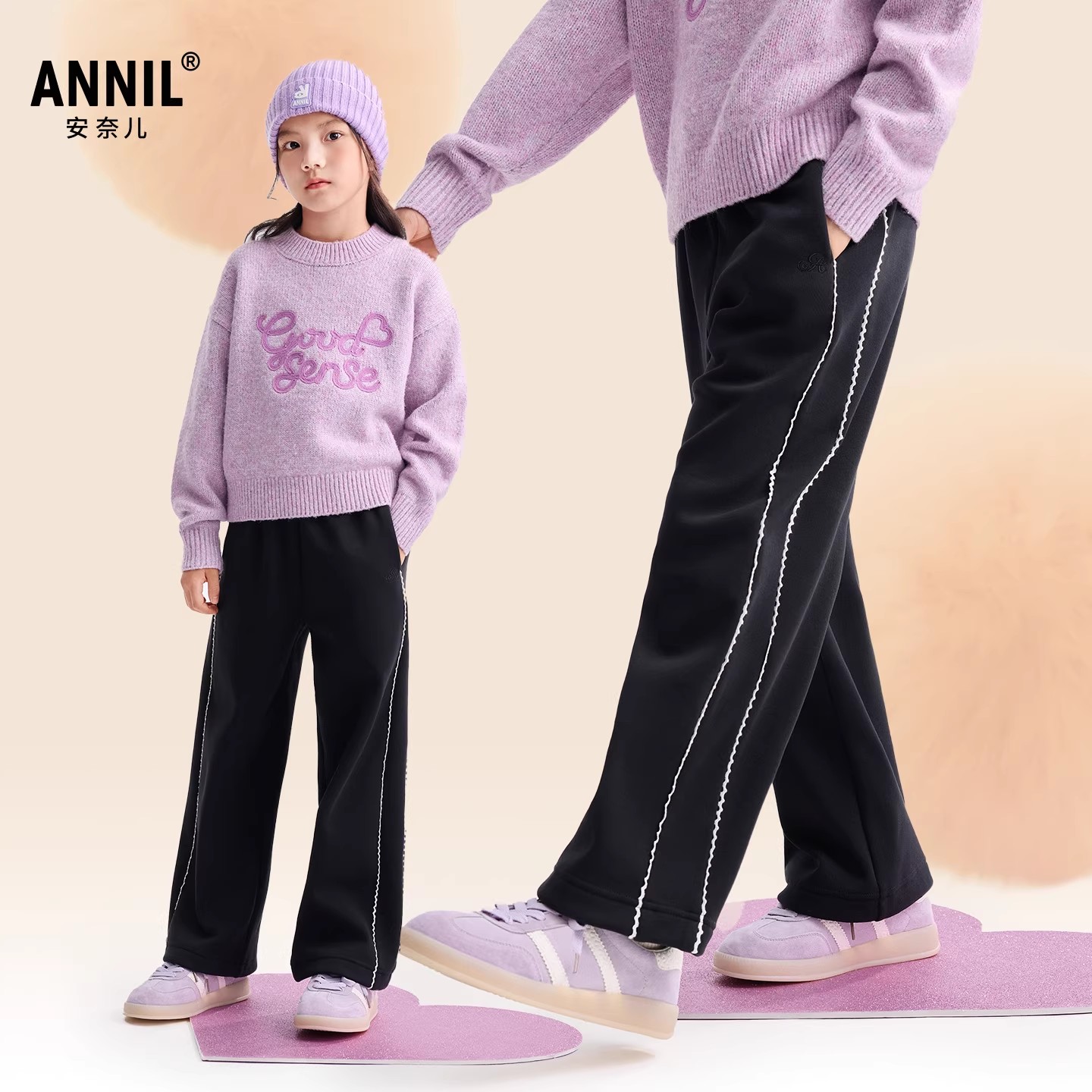 加厚黑色休闲弹力宽松阔腿长裤 2025冬新款 加绒保暖裤 安奈儿女童装