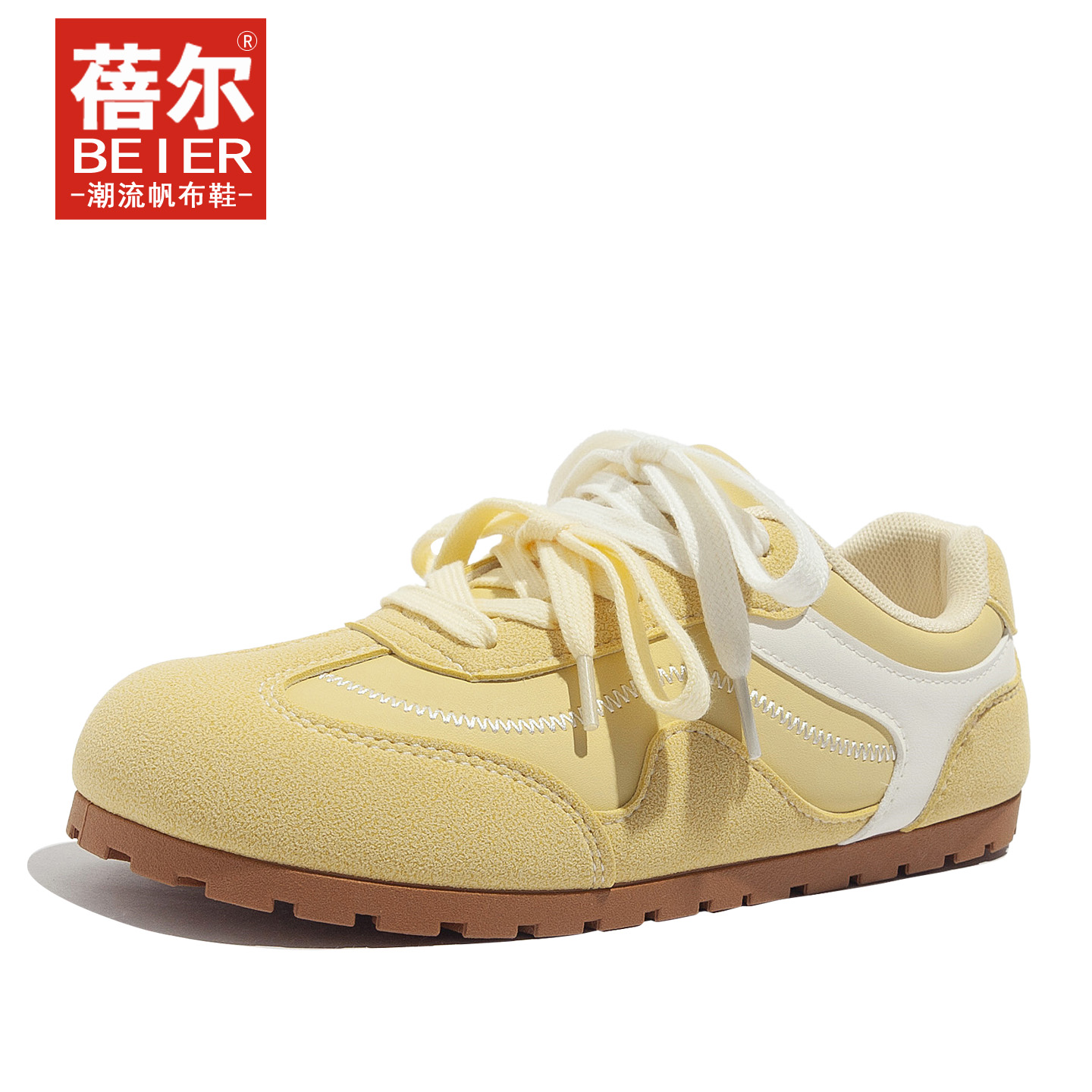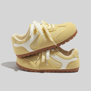 百搭运动休闲鞋 蓓尔黄色皮面德训鞋 平底阿甘女鞋 秋季 子 女2025新款