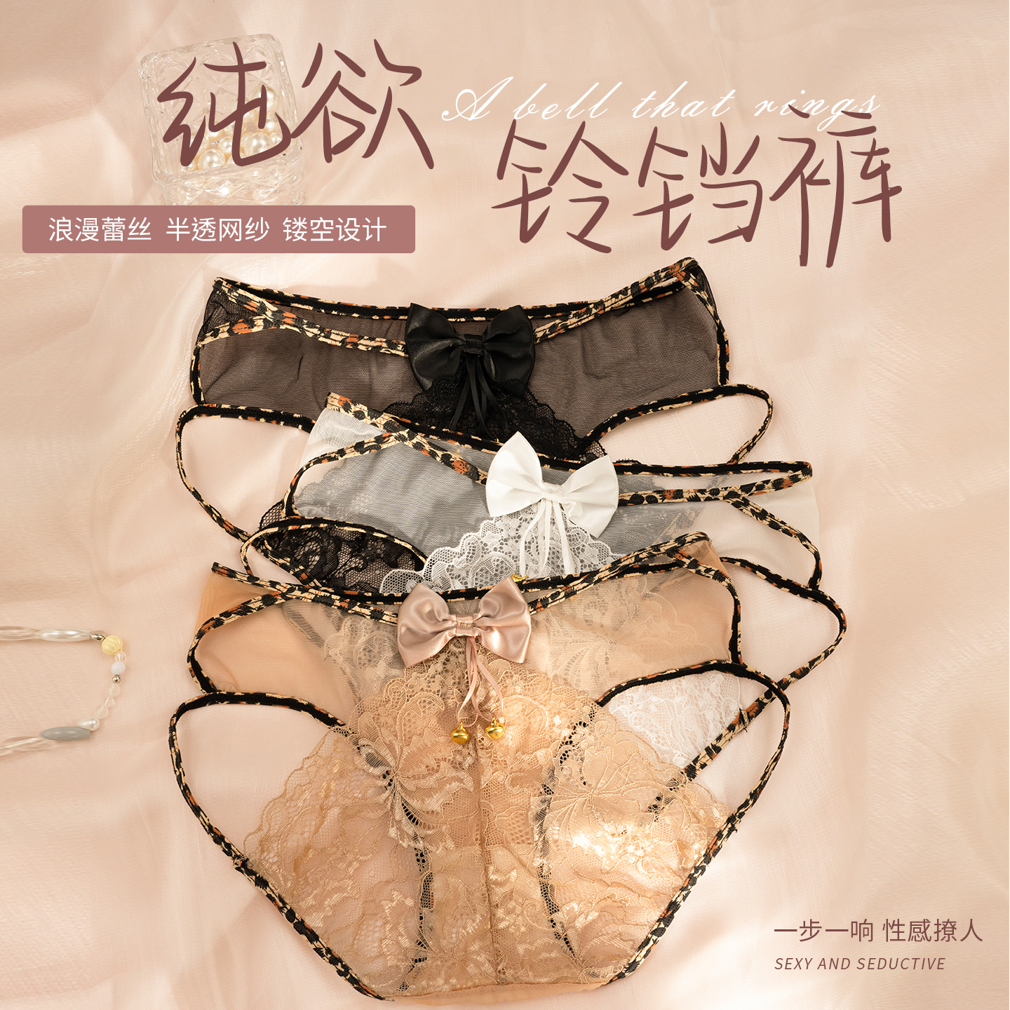 女纯棉抗菌 性感蕾丝纯欲诱惑镂空低腰三角裤 猫人内裤 女士2025新款