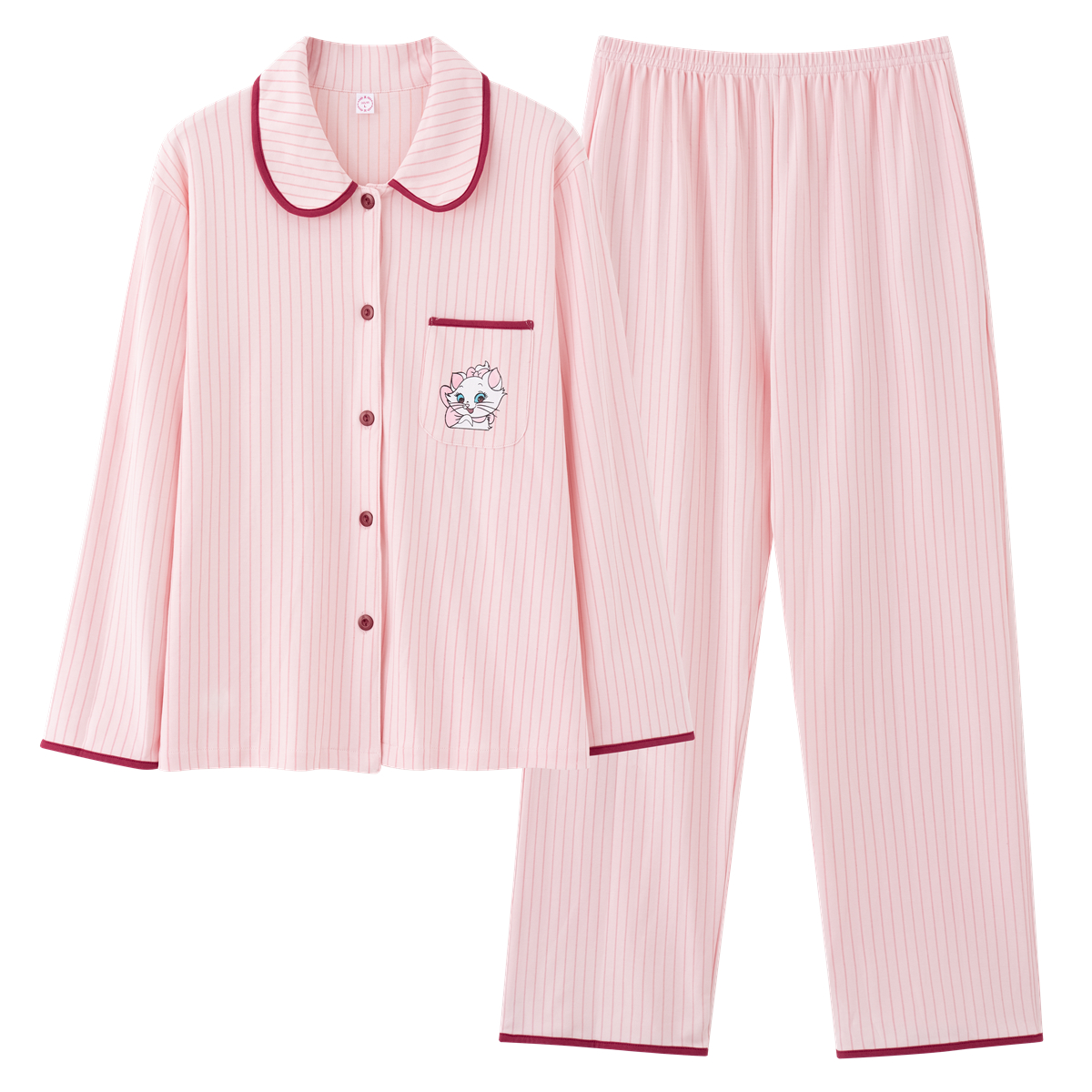 男春秋 带胸垫家居服套装 A类抗菌防螨纯棉情侣睡衣女长袖 红豆夏季