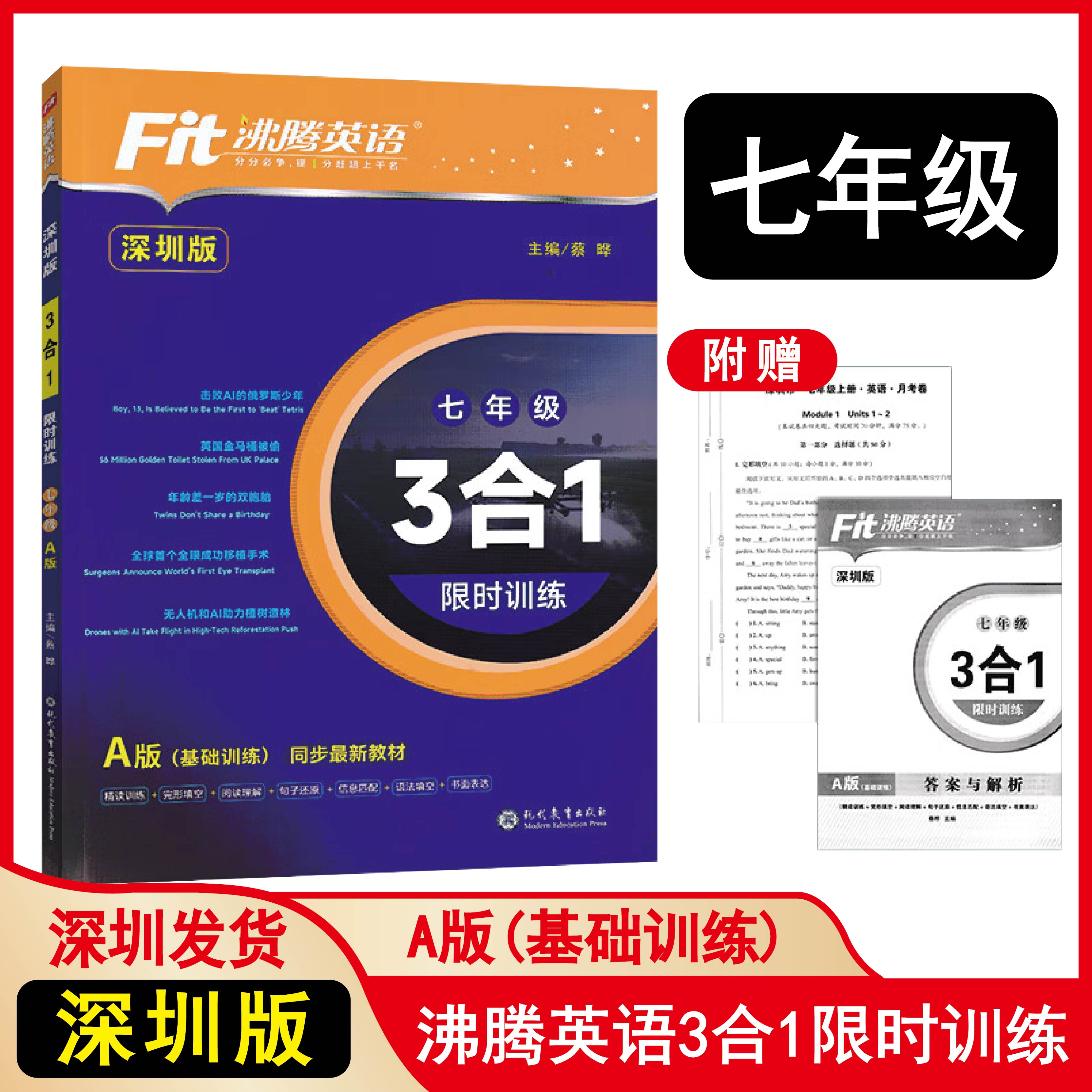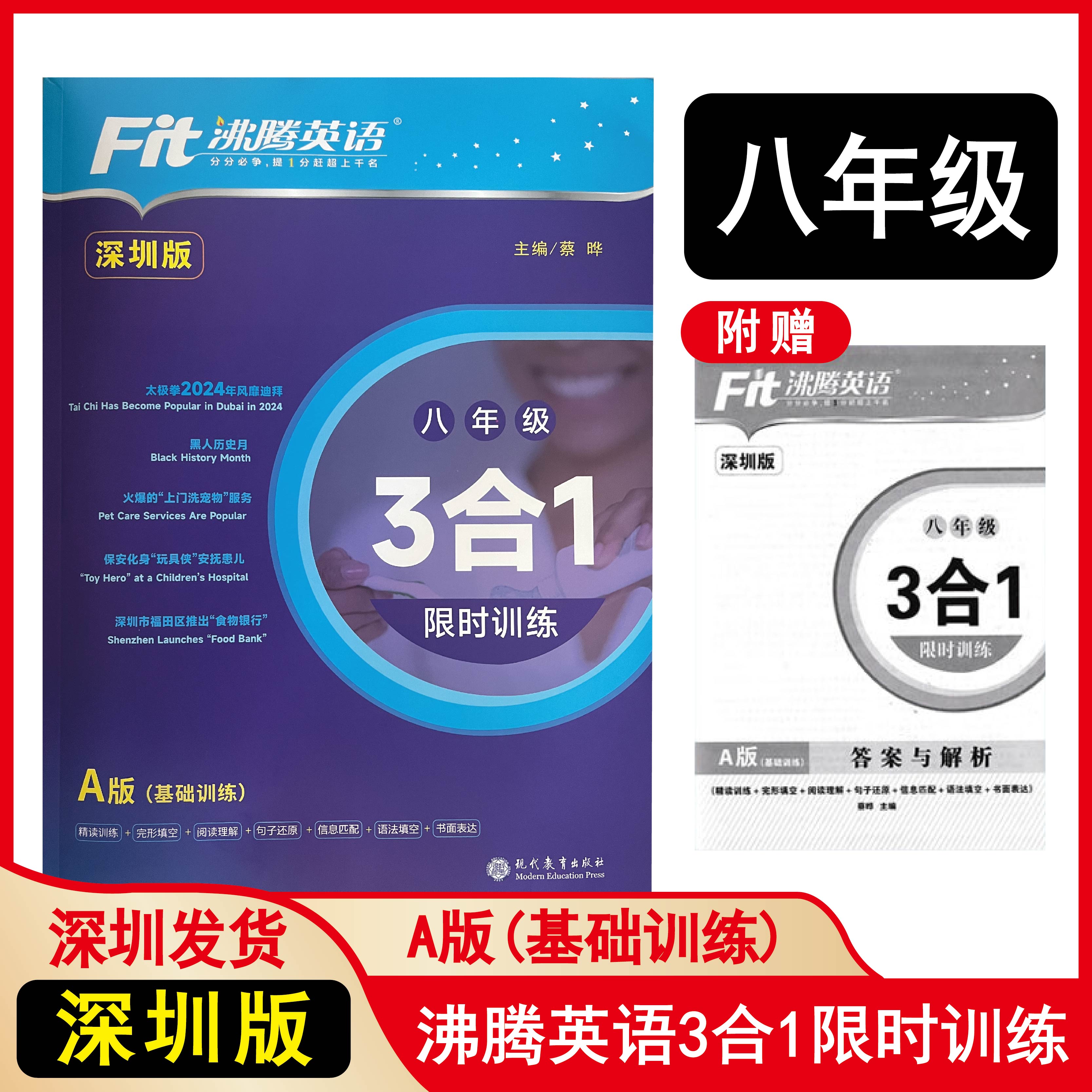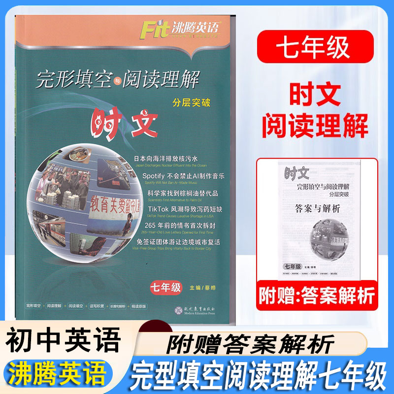 沸腾英语 中考沪教牛津版 时文阅读理解 基础与升级版 完形填空短文填空 3合1限时训练匹配七八九年级AB版 2025深圳版