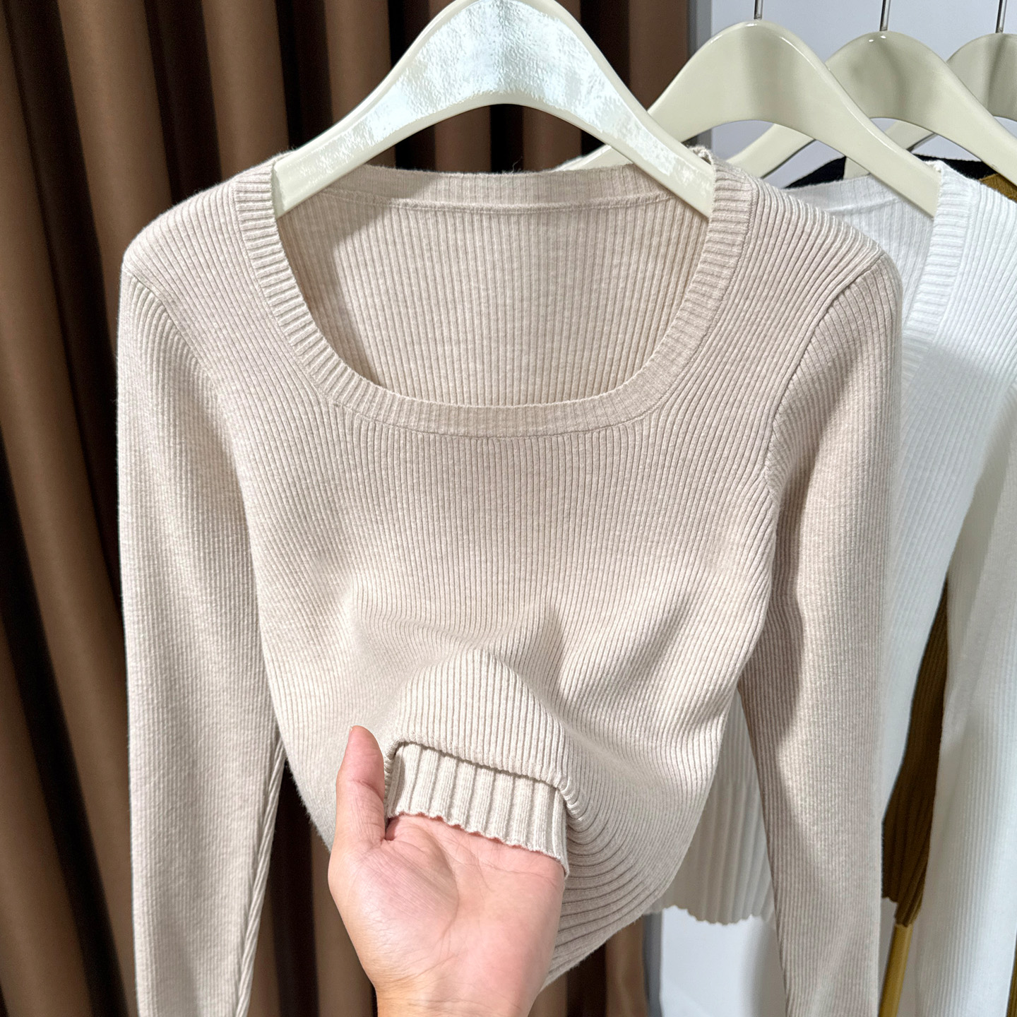 坑条内搭打底衫 方领薄款 低领短款 女2025新款 女软糯洋气毛衣 针织衫