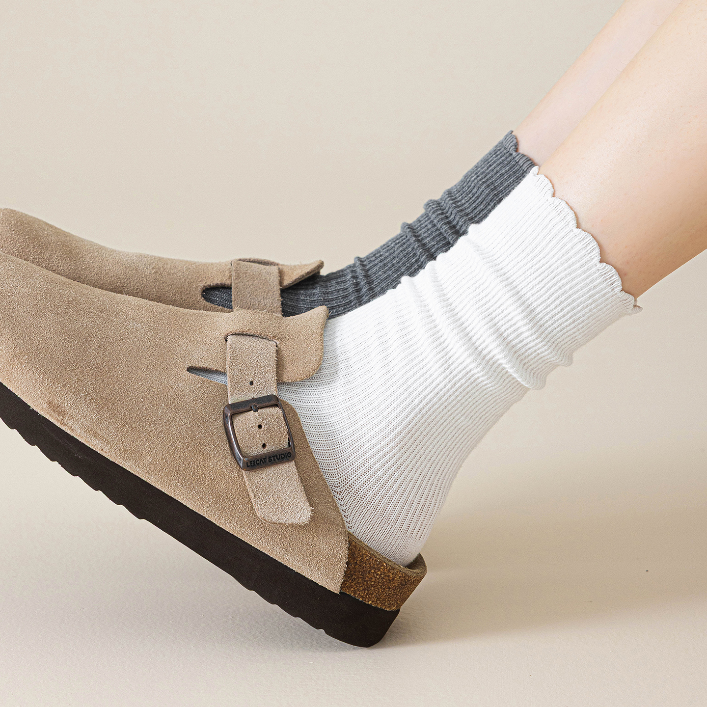 顶瓜瓜袜子女款 灰色花边堆堆袜月子无骨防臭中筒袜 纯棉纱线春秋季