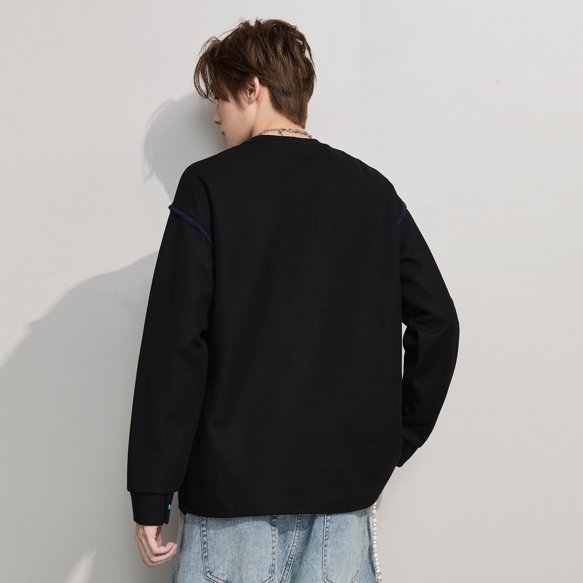 宽松情侣上衣外套 休闲潮牌落肩袖 ALLIN 黑色重磅亨利领卫衣男秋季